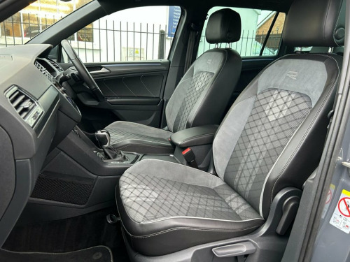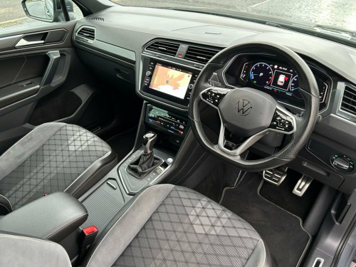 Volkswagen's facelifted version of its popular Tiguan R Line looks incredible finished Dolphin Grey metallic and is undoubtedly one of the most popular SUVs available on the market today. This particular vehicle has the amazing 7 speed DSG auto gearbox and a fuel efficient refined 1.5 TSi petrol turbocharged engine producing a healthy 148bhp. Presented here in sporty R Line spec it comes with lots of tasty enhancements such as a rear boor spoiler, R Line bumpers and side skirts, privacy glass, interior and exterior LED lighting technology and these awesome looking 20 inch alloy wheels. Open the door to the interior and your greeted with heated R Line embossed sports seats, black headcloth and a leather bound sport multifunction steering wheel. Matching the impressive looks is the tech spec on this vehicle as it comes fully equipped with digital cockpit, parking sensors front and rear with parking assistant and a touch screen infotainment system including satellite navigation, App Connect smart phone integration and DAB radio. A pristine one owner vehicle with a full Volkswagen service history from new and complete with MOT until September 2026. Dolphin Grey, 12V Socket in Centre Console in Storage , 12V Socket in Luggage Compartment, 12V Socket on Rear of Front Centre Armre, 2 LED Reading Lights in Front and 2 in R, 2 USB-C Ports in the Front and 1 USB-C C, 20in Alloy Wheels - Misano - Black - Dia, 3 Rear Three-Point Seat Belts with Tensi, Adaptive Cruise Control - ACC with Predi, Air Conditioning - 3 Zone Electronic Cli, Airbags, Ambient Lighting Pack, Anti-Theft Alarm System with Interior Mo, Anti-Theft Wheel Bolts, App-Connect, Assistance Pack Plus, Automatic Coming-Leaving Home Lighting F, Automatic Dimming Rear View Mirror, Automatic Hazard Lights Activation Under, Black Grained Lower Door Protectors with, Black Rooflining, Bo