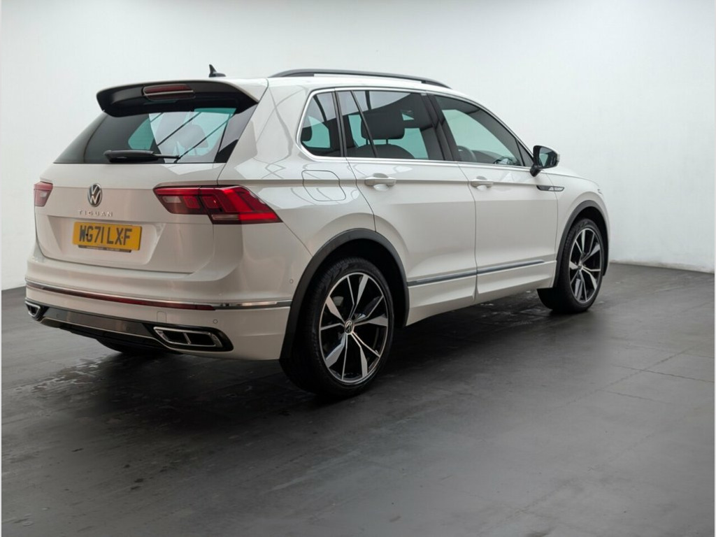 20" alloys, Panoramic sunroof, Park assist, Rear tinted glass and Navigation. Most recent service - 31.03.25 at 37k miles. This 2022 Volkswagen Tiguan TSI R Line boasts an MOT valid until March 2026, offering you peace of mind for the road ahead. This stylish SUV is equipped with a responsive 1.5 litre petrol engine, meeting Euro 6 emissions standards. Inside, you'll find a comfortable and convenient cabin featuring heated front seats and a three zone electronic climate control system, ensuring comfort for all occupants. The R Line trim level enhances the driving experience with features like automatic dusk sensing headlights for improved visibility and the Discover Media Navigation system, complete with streaming and internet capabilities, and Bluetooth connectivity. For seamless connectivity, the Tiguan includes App Connect, supporting both Android Auto and Apple CarPlay, allowing you to easily access your favourite apps. The generous boot space provides ample room for all your luggage and shopping needs. Performance is also a strong point, with the Tiguan accelerating from 0 to 60 miles per hour in just 9.2 seconds, demonstrating its capable and engaging driving dynamics. These features collectively highlight how this Volkswagen Tiguan offers a superior and well equipped driving experience compared to other vehicles in its class. 12V Socket in Centre Console in Storage , 12V Socket in Luggage Compartment, 12V Socket on Rear of Front Centre Armre, 2 LED Reading Lights in Front and 2 in R, 2 USB-C Ports in the Front and 1 USB-C C, 20in Alloy Wheels - Misano - Black - Dia, 3 Rear Three-Point Seat Belts with Tensi, Adaptive Cruise Control - ACC with Predi, Air Conditioning - 3 Zone Electronic Cli, Airbags, Ambient Lighting Pack, Anti-Theft Alarm System with Interior Mo, Anti-Theft Wheel Bolts, App-Connect, Assistance Pack Plus, Automatic Coming-Leaving Home Lighting F, Automatic Dimming Rear View Mirror, Automatic Hazard Lights Activation Under, Black Grained Lower Door Protectors with, Black Rooflining, Body Coloured Bu
