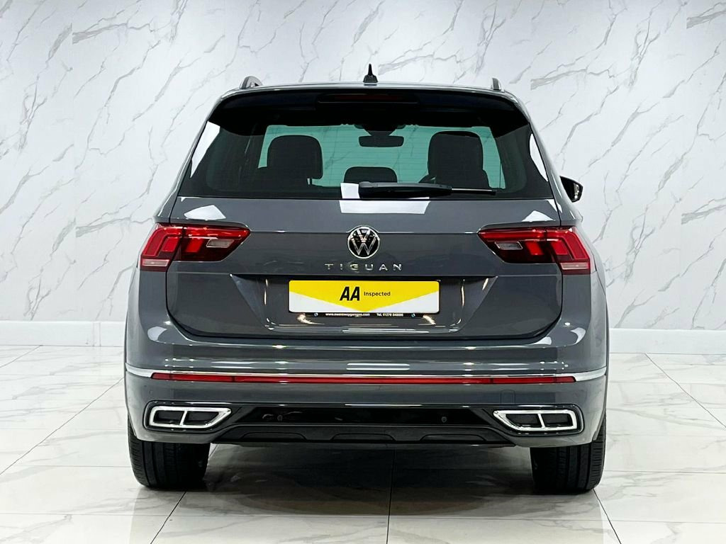 This Euro 6 compliant model is powered by a responsive 1.5 litre petrol engine, capable of reaching 0-60mph in just 9.2 seconds. It has had only one owner since new and its MOT is valid until July 2026. Notable features include automatic dusk sensing headlights, front and rear parking sensors with parking assistance, and Side Assist with Rear Traffic Alert for enhanced safety. The R Line trim level ensures a premium experience, further enhanced by LED Plus self levelling dipped and main beam headlights. For seamless journeys, the Discover Media Navigation Infotainment System provides streaming and internet capabilities, along with Bluetooth connectivity. These features collectively demonstrate a superior level of specification and care, setting this Tiguan apart from other vehicles in its class. Dolphin Grey, Greyson Cloth with Art Velours Microflee, 12V Socket in Centre Console in Storage , 12V Socket in Luggage Compartment, 12V Socket on Rear of Front Centre Armre, 2 LED Reading Lights in Front and 2 in R, 2 USB-C Ports in the Front and 1 USB-C C, 20in Alloy Wheels - Misano - Black - Dia, 3 Rear Three-Point Seat Belts with Tensi, Adaptive Cruise Control - ACC with Predi, Air Conditioning - 3 Zone Electronic Cli, Airbags, Ambient Lighting Pack, Anti-Theft Alarm System with Interior Mo, Anti-Theft Wheel Bolts, App-Connect, Assistance Pack Plus, Automatic Coming-Leaving Home Lighting F, Automatic Dimming Rear View Mirror, Automatic Hazard Lights Activation Under, Black Grained Lower