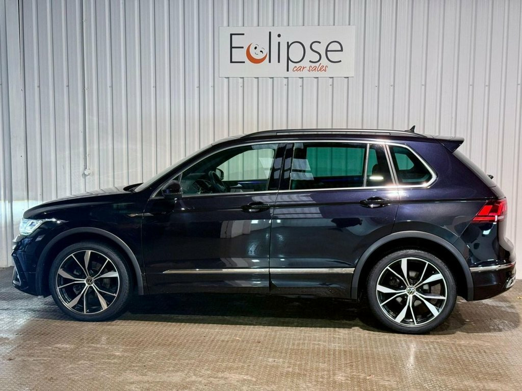 Volkswagen Tiguan 1.5 TSI R-Line 5dr DSG Registered December 2021 (71 Reg) Finished in Deep Black Metallic with Black and Grey Part-Leather Interior | 20 Inch Diamond Cut Alloy Wheels | Heated Front Seats | Heated Steering Wheel | Adaptive Cruise Control | Front and Rear Parking Sensors | Park Assist | Automatic Headlights and Wipers | Apple CarPlay and Android Auto | DAB Radio | Virtual Cockpit | ParkAssist | 3-Zone Climate Control | Fitted Floor Mats. Serviced at 26,488 miles on 07/01/2026. 12V Socket in Centre Console in Storage , 12V Socket in Luggage Compartment, 12V Socket on Rear of Front Centre Armre, 2 LED Reading Lights in Front and 2 in R, 2 USB-C Ports in the Front and 1 USB-C C, 20in Alloy Wheels - Misano - Black - Dia, 3 Rear Three-Point Seat Belts with Tensi, Adaptive Cruise Control - ACC with Predi, Air Conditioning - 3 Zone Electronic Cli, Airbags, Ambient Lighting Pack, Anti-Theft Alarm System with Interior Mo, Anti-Theft Wheel Bolts, App-Connect, Assistance Pack Plus, Automatic Coming-Leaving Home Lighting F, Automatic Dimming Rear View Mirror, Automatic Hazard Lights Activation Under, Black Grained Lower Door Protectors with, Black Rooflining, Body Coloured Bu