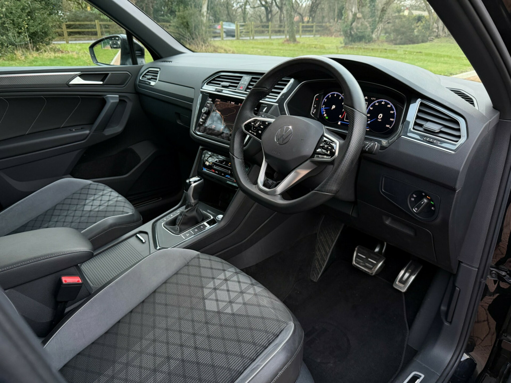 The newest arrival to RB Prestige is in the form of this facelift VW Tiguan R Line finished beautifully in deep black metallic! With a wealth of options including heated driver and passenger seat, heated steering wheel, adaptive cruise control, lane keeping, front and rear parking sensors, Apple CarPlay and digital cockpit, this example provides everything you would want and more! Having just been serviced with VW main dealer, the car also has completely unmarked 20 inch diamond cut alloy wheels having recently been refurbished, all of which make this car stand out from the rest!What's more this is the 1.5 litre petrol model, so the sporty looks are matched with economy from the engine and ease from the automatic gearbox! Look no further for your perfect next car, it's here waiting for you! Call 01202 878188 for more information today or for bespoke finance quotes! RB Prestige offer nationwide delivery, as well as competitive finance packages to fit your budget and needs. All our cars are inspected before delivery/collection and come with a 6 month warranty that can be used at any VAT registered garage in the UK. v socket in centre console in storage area, 12v socket in luggage compartment, 12v socket on rear of front centre armrest, 2 usb-c ports in the front and 1 usb-c charging socket on the centre console in the rear, app-connect, digital cockpit pro, discover media navigation infotainment system including streaming and internet, ready 2 discover infotainment system, usb-c ports in the front and centre console in the rear with increased charging performance, we connect preparation, ecall - emergency call service, 2 led reading lights in front and 2 in rear, air conditioning - 3 zone electronic climate control, ambient lighting pack, automatic dimming rear view mirror, black rooflining, brushed stainless steel pedals and footrest, chrome plated electric mirror adjustment switch surround, chrome plated electric window button surrounds, cup holders - front x2, decorative inserts carbon grey in dash and front door trim panels, drivers and passengers safety optimised head restraints, front footwell illumination, front passengers seat folding backrest, front sport seats with height and lumbar adjustment, glovebox, heated front seats, heated leather trimmed three spoke multifunction capacitive touch-sensitive steering wheels and gear knob, height and reach adjustable steering wheel, instrument lighting - white adjustable panel illumination, interior light delay, leather gearshifter, load lashing points x4 in luggage compartment, load through provision with two cup holders when folded down, luggage compartment cover - removable, luggage compartment light, luggage net, premium usb c cable - choice of either apple or android smartphone compatibility, rain sensor, rear fog lamp, rear seat release - standard, remote tailgate unlocking via key fob, remote unlocking for rear seat backrest, sliding rear bench seat, split folding rear seat backrests 40-20-40, storage compartment in drivers and front passenger door for 1.5 litre bottle, storage compartment in rear doors, storage compartment with soft touch opening cover - dashboard, storage compartments in luggage area - left and right, sun visors with illuminated vanity mirrors, three rear head restraints, tool kit, unique r-line carpet mats - front and rear, unique r-line door sill protectors, winter pack, 20in alloy wheels - misano - black - diamond-turned surface, anti-theft wheel bolts, black grained lower door protectors with chrome insert, body coloured bumpers and door handles, body coloured door mirrors with integrated indicators, body-coloured roof spoiler - rear, chrome side window surrounds, chrome trim - twin trapezoid styling elements on lower bumper - left and right, electric windows - front and rear, electrically heated - adjustable and foldable door mirrors with memory, front air intake with chrome strip, heated rear window, heated windscreen washer jets, r-line styling pack, radiator grille - chrome trim, rear tinted glass from b pillar backwards - approx 65 percent tinted, roof rails - black, tyre mobility kit, unique r-line badging, 3 rear three-point seat belts with tensioners on outer seats, airbags, anti-theft alarm system with interior monitoring - backup horn and towing protection, assistance pack plus, automatic hazard lights activation under emergency braking, electromechanical parking brake with auto hold function, electronic engine immobiliser, electronic stability control with driver steering recommendation - abs - asr - edl - edtc and trailer stabilization, front assist with city emergency braking system and pedestrian monitoring, front three-point seat belts with height adjustment and seat belt tensioners, isofix child seat preparation - easy-fit - for 2 outer rear seats, keyless entry, led rear number plate lights, lane assist with road edge recognition, proactive occupant protection, rear wash wipe with intermittent wipe, rigid safety cell with front and rear crumple zones, side assist with rear traffic alert, three point seatbelts for centre rear seat, two-tone horn, warning sound and light for unfastened seat belts - front, warning triangle, adaptive cruise control - acc with predictive cruise control, driver alert system - fatigue detection, driver profile selection - choice of three settings - eco - normal and sport modes, multifunction computer - colour, park assist, parking sensors - front and rear, power assisted steering - speed sensitive, progressive steering, sports suspension, tyre pressure loss indicator, warning sound and light for doors and tailgate if open, automatic coming-leaving home lighting function, dusk sensor - automatic driving lights, headlight range control, high beam assist, high level 3rd brake light, led plus self-levelling dipped and main beam headlights, rear lights incorporating led technology, warning lights on sound