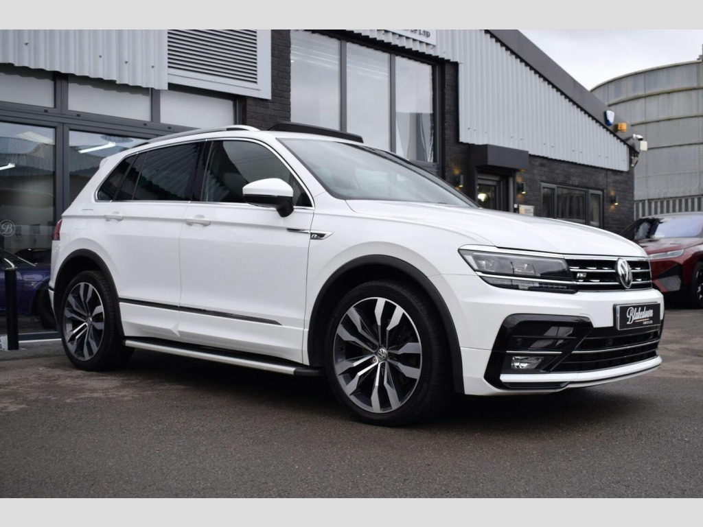 January 2018 Volkswagen Tiguan 2.0 BiTDI R-Line DSG 4Motion finished in Pure White with optional full black leather interior. This is the rare biturbo 240bhp version, not to be confused with the standard, lower powered 2.0 TDI version. 43000 miles covered with VW and independent service history support and we have completed the most recent service in house ready for the new owner. Excellent condition throughout - well maintained and lightly used. Supplied with two keys and all correct documentation, handbooks etc and this car has been subjected to our usual strict pre delivery inspection and preparation process ensuring all cosmetic and mechanical elements are in good order. Great spec with a long list of equipment which includes: Vienna Leather Interior (optional), Keyless Entry, Keyless Start and Full Electric Tailgate Operation (optional), 20in Alloy Wheels - Suzuka, Adaptive Cruise Control, Automatic Dimming Rear View Mirror, Car-Net App Connect, Climate Control - 3Zone Electronic Air Conditioning with Automatic Air Recirculation, Composition Media System, Discover Navigation Touch-Screen Navigation-Infotainment System with Car-Net Guide and Inform, Dynamic Light Assist, Electrically Foldable Door Mirrors, Folding Tables on Back of Front Seats, Front Assist with Pedestrian Monitoring Detection and City Emergency Braking, Front Fog Lights with Static Cornering Function, Heated Front Seats, Heated Windscreen Washer Jets, LED Headlights with Dynamic Light Assist, LED Rear Lights, Lane Assist, Panoramic Sliding Sunroof, Parking Sensors - Front and Rear, R-Line Styling Pack, Rain Sensor and more.