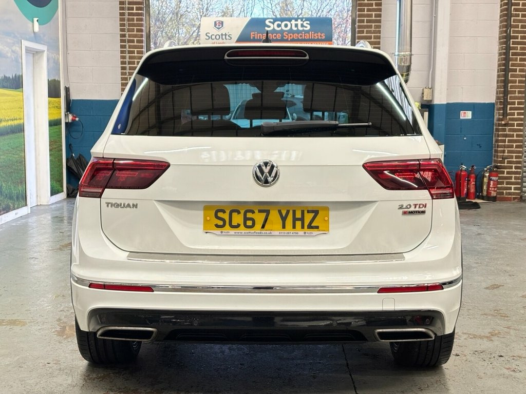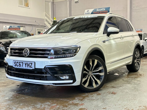Scott's of Leeds Car Sales are pleased to offer this VOLKSWAGEN TIGUAN 2.0 BiTDI R-Line SUV 5 Door Diesel Automatic DSG 4Motion in White. The car is in good condition throughout, in the best colour combination and a great specification including Satellite navigation, Panoramic glass sunroof, Apple car play, Heated seats, Bluetooth, Paddleshift gearbox, DAB digital radio, USB point, Aux point, Front & rear parking sensors, Adaptive cruise control, Automatic lights, Lane assist, Dual climate control, Rear picnic tables, Electric folding wing mirrors, Privacy glass, Cd player, Electric windows, Drivers armrest, Isofix, Alloy wheels and much much more. The car will be supplied with an up to date service record having just been serviced and new turbos fitted in our Workshop, an MOT until August 2026 and 2 Keys ready to drive away. A guaranteed 12 Months MOT can be added for an extra £100. DISCLAIMER: The above specification is true and correct. Any other specification listed elsewhere can sometimes be incorrect. Please check with Sales Executive to clarify this if needed prior to purchase. Oryx White, Discover Navigation Pro Touch-Screen Nav, 12V Socket - Luggage Compartment, 12V Socket in Centre Console in Storage , 12V Socket on Rear of Front Centre Armre, 18 Degree Angle of Approach, 20in Alloy Wheels - Suzuka, ABS - Anti-Lock Braking System, Active Bonnet, Active Info Display, Adaptive Cruise Control, Airbags, Alarm with Interior Protection with Deac, Aluminium-Look Decorative Inserts in Das, Ambient Lighting, Automatic Coming-Leaving Home Lighting F, Automatic Dimming Rear View Mirror, Automatic Hazard Light Activation Under , Black Rooflining, Body Coloured Bumpers and Door Handles, Body Coloured Rear Spoiler, Body-Coloured Door Mirrors with Integrat, Car-Net App Connect