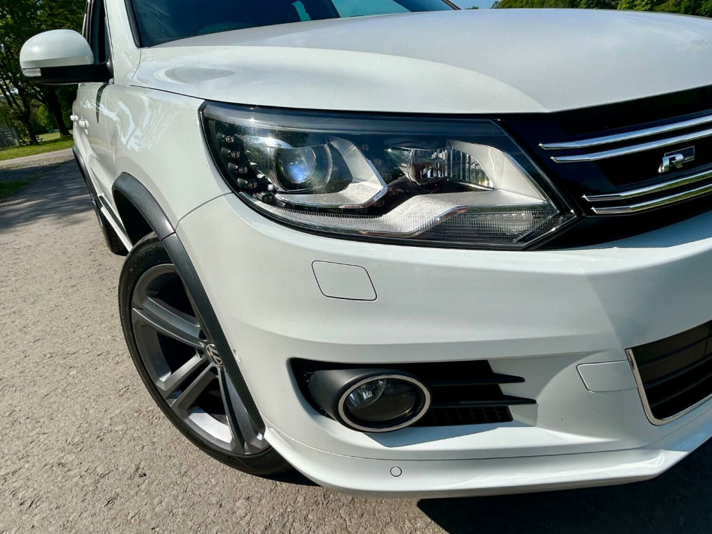 Here we Have a Very popular and stylish VW Tiguan R Line 2.0 TD 180 4WD! This particular model also has the optional upgraded xenon headlights,Satnav,dab radio and front & Rear sensors. Just 72000 Miles backed by a Full history including a cambelt and water pump at 60,000 miles. 6 speed Manual Variant for great fuel economy and only £265 tax per annum. 2 keys present along with Full V5 and bookpack. Also has the cruise control option as many desire this on a suv! , , Just Serviced by us using VW Genuine parts and Oil grade and has had all wheels freshly smoke grey refurbished. A local vehicle fully HPI Clear and genuine Vosa verified mileage. As You would expect it drives beautifully and no warning lights present. Plenty of power from the bulletproof VW 2.0 TDI Powerplant yet great economy for a Robust suv. These models always prove a great seller especially finished in stunning Pure white. Full R Sports interior and R bodypack,led lights and double spoke R wheels. Optional 6 months UK warranty available as well as Finance packages to suit each budget. Thanks for taking the time to view Our advert. **Neath Portalbots only trading standards approved motor dealers **