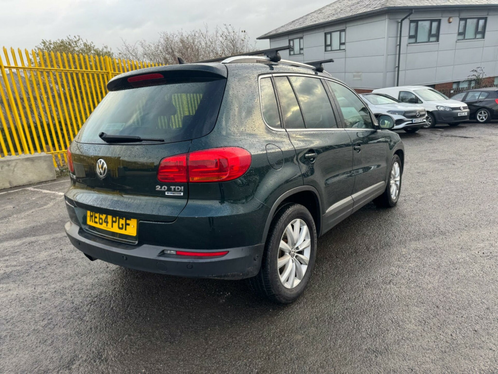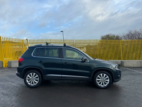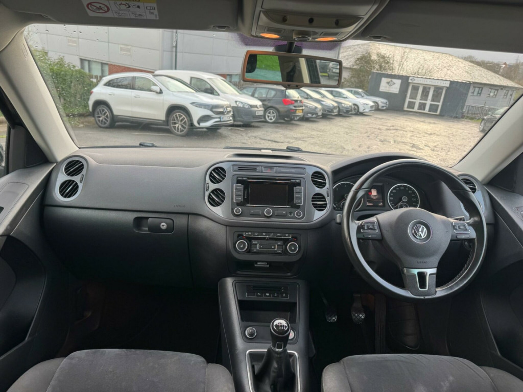 This 2014 Volkswagen Tiguan TDI Match presents a remarkable opportunity with its exceptionally low mileage of just 83,000 miles and a history of only two owners. As a 2.0 litre diesel model in the popular Match trim, this Tiguan offers a blend of practicality and comfort. It comes equipped with front and rear parking sensors, including Park Assist to help you manoeuvre with ease. The convenience continues with automatic dusk sensing headlights and a 2 zone electronic climate control system that automatically recirculates the air. Stay connected on the go with the integrated Bluetooth telephone preparation.This Volkswagen Tiguan stands out with its impressive fuel economy, achieving a highlight of 53 miles per gallon, which is significantly better than many other vehicles in its class. Furthermore, its low CO2 emissions and low insurance group rating contribute to lower running costs, making it an economical choice for everyday driving. These factors combined indicate a vehicle that offers both efficiency and affordability. v socket - centre console, 12v socket - luggage compartment, 17in alloy wheels - new orleans, 2 zone electronic climate control with automatic air recirculation, abs - anti-lock braking system, asr - anti slip regulation, air vent surrounds - steel finish, airbags - curtain, airbags - driver, airbags - front passenger, airbags - front passenger with deactivation switch, airbags - front seat side impact, alarm with interior protection, anti-theft wheel bolts, armrest - front centre with storage compartment, automatic dimming rear view mirror, aux-in socket, bluetooth telephone preparation, body coloured bumpers, body coloured door handles, body-coloured door mirrors with integrated indicators, central locking - remote with 2 remote keys, chrome trimmed front air intake grille surround, colour screen - 5in, cup holders - front x2 rear x1, cup holders - rear x2, dash-mounted mp3 compatible cd player, dashboard and centre console - anthracite metallic, differential lock - electronic, door mirrors - electrically adjustable and heated, driver alert system, ebd - electronic brake pressure distribution, esp - electronic stability programme, electric windows - front and rear, electronic engine immobiliser, electronic parking brake with auto hold function, flat tyre indicator, folding front seat backrest, folding table on back of front seats, footwell illumination - front, front fog lights with cornering lights, front seat back storage pockets, front sports seats, glovebox - cooled and lockable, head restraints - front whiplash optimised, headlights - coming-leaving home function, headlights - dusk sensor - automatic driving lights, headlights - halogen clear - range adjustable, heated rear window, height and reach adjustable steering column, high level 3rd brake light, isofix child seat preparation for 2 rear seats, instrument lighting - white adjustable panel illumination, interior light delay, interior lighting delay, lights on warning buzzer, load-through provision, luggage compartment cover - removable, luggage compartment light, luggage compatrment - load lashing points x5, mdi - multi device interface with usb - ipod connection cables, multifunction computer, park assist including parking sensors front and rear, parking sensors - front, parking sensors - rear, power assisted steering - speed sensitive, rns 315 touch screen satellite navigation and dab radio system, radiator grille - black with chrome louvres, rain sensor, reading lights - front x2, rear wash wipe with intermittent wipe, rigid safety cell with front and rear crumple zones, roof rails - chrome plated, sd card reader, seatbelt reminder, seats - front lumbar support, seats - split folding rear backrests 60-40 - sliding and reclining, side window surrounds - chrome, side and rear protection pack - black with chrome-plated insert, silver metallic decorative inserts in door panels, spare wheel - space saver steel, speakers x8, split folding rear backrests 60-40, static cornering function, steering wheel - 3-spoke - leather trimmed, steering wheel - multifunction leather trimmed, storage compartment in drivers door for 1.0 litre bottle, storage compartment in passengers door for 1.5 litre bottle, storage compartment in roof console, storage tray in centre console, storage tray on dashboard, sun visors - vanity mirrors and illuminated, three rear head restraints, tinted glass - heat insulating rear 65 percent light absorbing from b pillar backwards, tyre pressure indicator, under seat drawers - front, unique bluemotion technology badging, warning triangle, windscreen wipers with intermittent wipe and 4 position delay