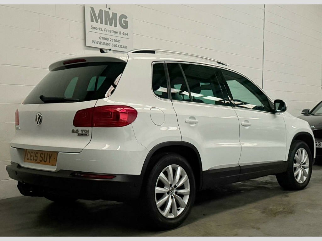 **AWAITING VALET** Here at MMG Sports, Prestige & 4x4 we are proud to present this ever popular diesel SUV, VW TIGUAN 2.0 TDI MATCH in solid white paintwork with contrasting grey interior. Fantastic modern specification to include but not limited too - Auto lights, Remote central locking (x2 keys), Electric windows, Electric mirrors, Climate control, DAB, Bluetooth, Sat nav, Front & rear parking sensors plus park assist, Privacy glass, Removable towbar (with keys), Multi function steering wheel and 17'' Alloy wheels. 12 months MOT, Full service history consisting of 11 services. Runs and drives perfect, Exterior is in excellent condition as is the Interior. All our retail cars come with a complimentary 3 months nationwide warranty and breakdown cover as standard which is extendable to 6, 12,24 or 36 months priced from only £129. Small deposit will secure the vehicle. *PLEASE NOTE VIEWINGS ARE BY APPOINTMENT ONLY. Please Call, Email or WhatsApp for more information or to reserve. 01909 251041. 12V Socket - Centre Console, 12V Socket - Luggage Compartment, 17in Alloy Wheels - New Orleans, 2 Zone Electronic Climate Control with Automatic Air Recirculation, ABS - Anti-Lock Braking System, ASR - Anti Slip Regulation, Air Vent Surrounds - Steel Finish, Airbags - Curtain, Airbags - Driver, Airbags - Front Passenger, Airbags - Front Passenger with Deactivation Switch, Airbags - Front Seat Side Impact, Alarm with Interior Protection, Anti-Theft Wheel Bolts, Armrest - Front Centre with Storage Compartment, Automatic Dimming Rear View Mirror, Aux-In Socket, Bluetooth Telephone Preparation, Body Coloured Bumpers, Body Coloured Door Handles, Body-Coloured Door Mirrors with Integrated Indicators, Central Locking - Remote with 2 Remote Keys, Chrome Trimmed Front Air Intake Grille Surround, Colour Screen - 5in, Cup Holders - Front x2 Rear x1, Cup Holders - Rear x2, Dash-mounted MP3 Compatible CD Player, Dashboard and Centre Console - Anthracite Metallic, Differential Lock - Electronic, Door Mirrors - Electrically Adjustable and Heated, Driver Alert System, EBD - Electronic Brake Pressure Distribution, ESP - Electronic Stability Programme, Electric Windows - Front and Rear, Electronic Engine Immobiliser, Electronic Parking Brake with Auto Hold Function, Flat Tyre Indicator, Folding Front Seat Backrest, Folding Table on Back of Front Seats, Footwell Illumination - Front, Front Fog Lights with Cornering Lights, Front Seat Back Storage Pockets, Front Sports Seats, Glovebox - Cooled and Lockable, Head Restraints - Front Whiplash Optimised, Headlights - Coming-Leaving Home Function, Headlights - Dusk Sensor - Automatic Driving Lights, Headlights - Halogen Clear - Range Adjustable, Heated Rear Window, Height and Reach Adjustable Steering Column, High Level 3rd Brake Light, ISOFIX Child Seat Preparation for 2 Rear Seats, Instrument Lighting - White Adjustable Panel Illumination, Interior Light Delay, Interior Lighting Delay, Lights on Warning Buzzer, Load-Through Provision, Luggage Compartment Cover - Removable, Luggage Compartment Light, Luggage Compatrment - Load Lashing Points x5, MDI - Multi Device Interface with USB - iPod Connection Cables, Multifunction Computer, Park Assist including Parking Sensors Front and Rear, Parking Sensors - Front, Parking Sensors - Rear, Power Assisted Steering - Speed Sensitive, RNS 315 Touch Screen Satellite Navigation and DAB Radio System, Radiator Grille - Black with Chrome Louvres, Rain Sensor, Reading Lights - Front x2, Rear Wash Wipe with Intermittent Wipe, Rigid Safety Cell with Front and Rear Crumple Zones, Roof Rails - Chrome Plated, SD Card Reader, Seatbelt Reminder, Seats - Front Lumbar Support, Seats - Split Folding Rear Backrests 60-40 - Sliding and Reclining, Side Window Surrounds - Chrome, Side and Rear Protection Pack - Black with Chrome-Plated Insert, Silver Metallic Decorative Inserts in Door Panels, Spare Wheel - Space Saver Steel, Speakers x8, Split Folding Rear Backrests 60-40, Static Cornering Function, Steering Wheel - 3-Spoke - Leather Trimmed, Steering Wheel - Multifunction Leather Trimmed, Storage Compartment in Drivers Door for 1.0 litre bottle, Storage Compartment in Passengers Door for 1.5 Litre Bottle, Storage Compartment in Roof Console, Storage Tray in Centre Console, Storage Tray on Dashboard, Sun Visors - Vanity Mirrors and Illuminated, Three Rear Head Restraints, Tinted Glass - Heat Insulating Rear 65 Percent Light Absorbing from B Pillar Backwards, Tyre Pressure Indicator, Under Seat Drawers - Front, Unique BlueMotion Technology Badging, Warning Triangle, Windscreen Wipers with Intermittent Wipe and 4 Position Delay, RNS 510 DVD Touch Screen Satellite Navigation and Radio System with Integrated Voice Control, Tyre Pressure Monitoring System - Electronic, Airbags - Side System Rear, 18in Alloy Wheels - Sierra, Towbar, Alcantara - Flanell Grey, Carpet Mats - Front and Rear, Storage Pack. Full service history