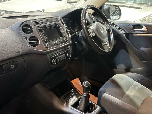 Volkswagen Tiguan Match Bluemotion Tech, 4Wheel Drive, Genuine Example, Great Spec, Spec includes: Sat Nav + Heated Seats + Park Assist + Parking Sensors + Xenon Lights + Led Lights + Bluetooth + DAB Radio + Aux + Usb + Air-con + Cruise Control + Dual Climate Control + Auto Dimming Mirrors + Steering Controls + Auto Lights + Auto Wipers + Privacy Glass + Armrest + Electric Mirrors + Spare Tyre + Parcel Shelf. Full service history, just had £1500 spent on new clutch & dual mass flywheel, new front brake pads & discs, cambelt replaced, long mot August 2026, hpi clear, 2 keys, 2 former keepers, you can secure this car with a small deposit over the phone **PLEASE CALL BEFORE TRAVELLING + VIEWING AVAILABLE BY APPOINTMENT ONLY**