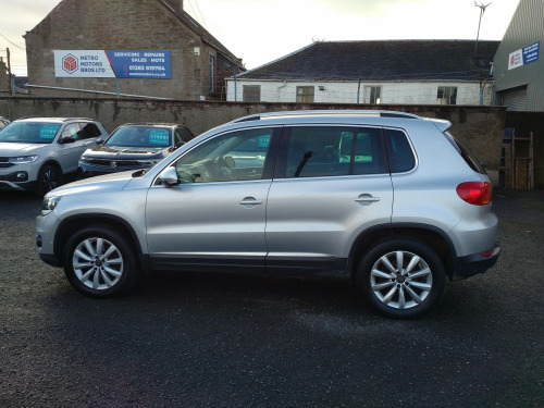 This 2015 Volkswagen Tiguan TDI Match boasts a full service history (cam-belt & water pump been replaced), ensuring its excellent provenance.  This four wheel drive model features a robust 2.0 litre diesel engine and offers a substantial towing weight of 2200 kg.  For your peace of mind, it comes with a 6 month warranty and a 12 month MOT provided on purchase.  Notable features include cruise control, automatic dusk sensing headlights, tinted rear glass,  and Bluetooth telephone preparation for seamless connectivity. , The Tiguan TDI Match also excels with its advanced park assist system, complete with front and rear parking sensors, making manoeuvring effortless. Its low insurance group rating is a significant highlight, indicating that this vehicle is more economical to own and run compared to many others in its class. This well equipped and well maintained Tiguan is ready for its next adventure. , Finance Example, , Price £ 7750	, Deposit £ 1250, Amount of Credit £ 6500, Monthly Payment £ 166.08, Term 48 Months, APR 10.9%, Charge for Credit  £ 1472.84, Total Amount Payable £ 9,222.84, , Credit subject to status, , Thank you for viewing our car. Please contact us to arrange an appointment to view the car. All cars at Metro Motors come supplied with a minimum of 12 months MOT and 6 months warranty. An Experian Car Data Report can be produced on request. Part Exchanges are welcome. Nil deposit finance packages are available on all our vehicles and can be taken out over a term of up to 72 months. Subject to status. Please do not hesitate to contact us for more information. www.metromotors.co.uk or [email protected] or 01382 819764