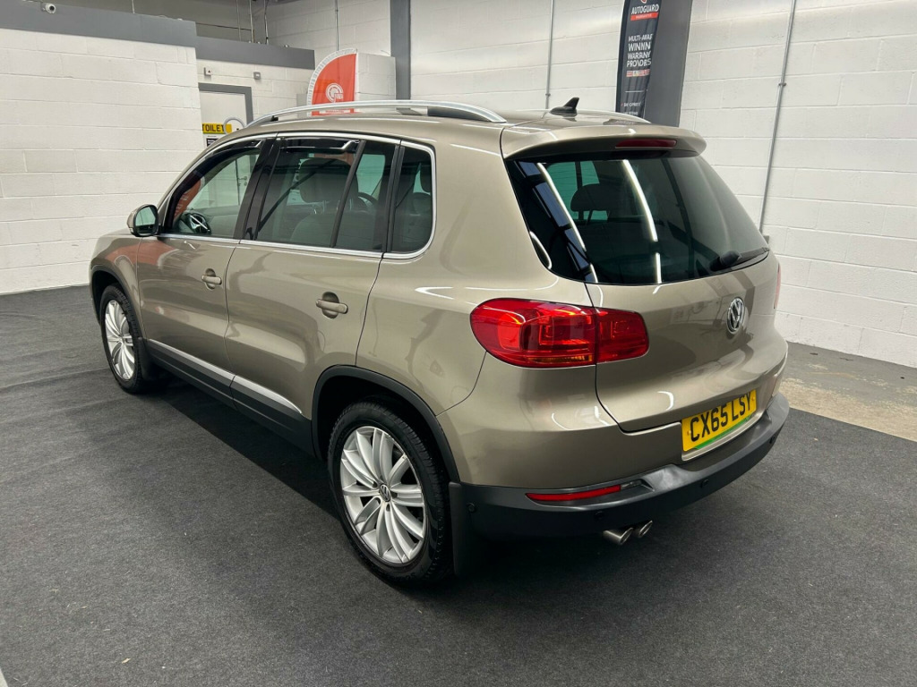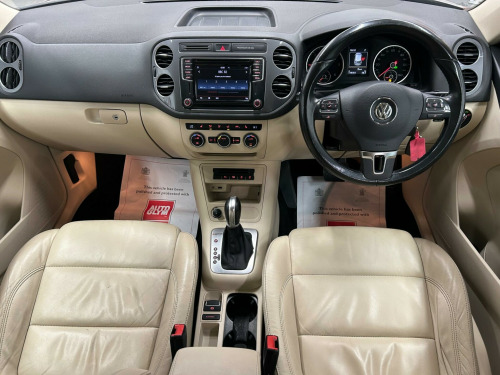 Viewings by appointment . + . Award winning, 5* Rated dealership . + . Nationwide delivery available . + . See our walk around video. TIMING BELT REPLACED AT 82k miles. This 2015 Volkswagen Tiguan TDI Match offers a compelling blend of capability and comfort, making it an excellent choice for those seeking a reliable and versatile vehicle. Powered by a robust 2.0 litre diesel engine and featuring four wheel drive, this Euro 6 compliant model is well equipped for various driving conditions. Inside, you'll find a 6.5 inch colour touch screen, a multifunction steering wheel for easy control, and drivers seat height adjustment for optimal comfort. The inclusion of an MDI Multi Device Interface and Electronic Stability Control further enhances the practicality and safety of this well appointed Tiguan.With a towing weight of 2200 kg, this Tiguan is ready for your adventures, whether it's hauling equipment or towing a caravan. Its impressive acceleration, reaching 0 to 62 miles per hour in just 8.5 seconds, demonstrates a responsive performance that sets it apart from many other vehicles in its class. This combination of strong performance, advanced features, and practical towing capacity makes the 2015 Volkswagen Tiguan TDI Match a standout option for discerning drivers.All of our strict PDI processes have been completed, signed off along with certificates and it's also received a fresh service by us so it's ready to go . + . Please view our website to see what we offer as a dealership along with details of our processes to ensure peace of mind motoring for all of our customers . + ., 0v socket - rear, cruise control, tyre pressure monitoring system - electronic, vienna leather - corn silk beige, 12v socket - centre console, 12v socket - luggage compartment, 17in alloy wheels - new orleans, 18 degree angle of approach, 2 zone electronic climate control with automatic air recirculation, 3 years car net guide, abs plus - anti-lock braking system, asr - anti slip regulation, air vent surrounds - steel finish, airbags - curtain, airbags - driver, airbags - front passenger, airbags - front passenger with deactivation switch, airbags - front seat side impact, alarm with interior protection, armrest - front centre with storage compartment, automatic dimming rear view mirror, aux-in socket, bluetooth telephone preparation, body coloured bumpers, body coloured door handles, body-coloured door mirrors with integrated indicators, central locking - remote with 2 remote keys, chrome trimmed front air intake grille surround, colour touch screen - 6.5in, cup holders - rear x2, dab+ - digital radio reception, dash-mounted mp3 compatible cd player, dashboard and centre console - anthracite metallic, daytime running lights, differential lock - electronic, discover navigation touch-screen system, door mirrors - electrically adjustable and heated, door protectors - black with chrome insert, driver alert system, drivers seat height adjustment, ebd - electronic brake pressure distribution, esc - electronic stability control, electric windows - front and rear, electronic engine immobiliser, electronic parking brake with auto hold function, folding front seat backrest, folding table on back of front seats, footwell illumination - front, front fog lights with cornering lights, front passengers seat height adjustment, front seat back storage pockets, front sports seats, gear knob - leather, glovebox - cooled and lockable, head restraints - front whiplash optimised, headlights - coming-leaving home function, headlights - dusk sensor - automatic driving lights, headlights - halogen clear - range adjustable, heated rear window, height and reach adjustable steering column, high level 3rd brake light, isofix child seat preparation for 2 rear seats, instrument lighting - white adjustable panel illumination, interior light delay, lights on warning buzzer, load-through provision, luggage compartment cover - removable, luggage compartment light, luggage compatrment - load lashing points x5, mdi - multi device interface, multifunction computer, park assist including parking sensors front and rear, parking sensors - front, parking sensors - rear, power assisted steering - speed sensitive, radiator grille - black with chrome louvres, rain sensor, reading lights - front x2, rear wash wipe with intermittent wipe, rigid safety cell with front and rear crumple zones, roof rails - chrome plated, sd card reader, seat-belt tensioners, seatbelt reminder, seats - drivers lumbar support, seats - split folding rear backrests 60-40 - sliding and reclining, side window surrounds - chrome, side and rear protection pack - black with chrome-plated insert, silver metallic decorative inserts in door panels, sound output - 4x20 watt, spare wheel - space saver steel, speakers x8, start-stop button, steering wheel - 3-spoke - leather trimmed, steering wheel - multifunction, storage compartment in drivers door for 1.0 litre bottle, storage compartment in passengers door for 1.5 litre bottle, storage compartment in roof console, storage tray in centre console, storage tray on dashboard, sun visors - vanity mirrors and illuminated, tcs - traction control system, three rear head restraints, tinted glass - heat insulating rear 65 percent light absorbing from b pillar backwards, tyre pressure loss indicator, under seat drawers - front, warning triangle, windscreen wipers with intermittent wipe and 4 position delay