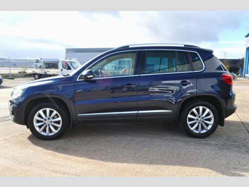 2014 Volkswagen Tiguan 2.0 TDI BlueMotion Tech Match SUV 5 Door Diesel DSG 4WD - Only 77,452 Miles From New - Just One Previous Keeper From New - MOT October 2026 - £3,865 Of Factory Fitted Extras! - Heated Leather Interior - Touch Screen Infotainment System - DAB Digital Radio - Bluetooth Mobile Phone Connectivity - Coloured Satellite Navigation - Park Assist With Front And Rear Parking Sensors And Reverse Camera - Start Stop - Cruise Control With Speed Limiter - 17" Alloy Wheels - Front And Rear Electric Windows - Electric Adjustable And Heated Wing Mirrors - ISOFIX And More! Mirror Pack, Night Blue, Headlights - Bi-Xenon - Gas Discharged, Cruise Control, Rear View Camera, RNS 510 DVD Touch Screen Satellite Navig, Winter Pack, 12V Socket - Centre Console, 12V Socket - Luggage Compartment, 17in Alloy Wheels - New Orleans, 2 Zone Electronic Climate Control with A, ABS - Anti-Lock Braking System, ASR - Anti Slip Regulation, Air Vent Surrounds - Steel Finish, Airbags - Curtain, Airbags - Driver, Airbags - Front Passenger, Airbags - Front Passenger with Deactivat, Airbags - Front Seat Side Impact, Alarm with Interior Protection, Anti-Theft Wheel Bolts, Armrest - Front Centre with Storage Comp, Automatic Dimming Rear View Mirror, Aux-In Socket, Bluetooth Telephone Prep
