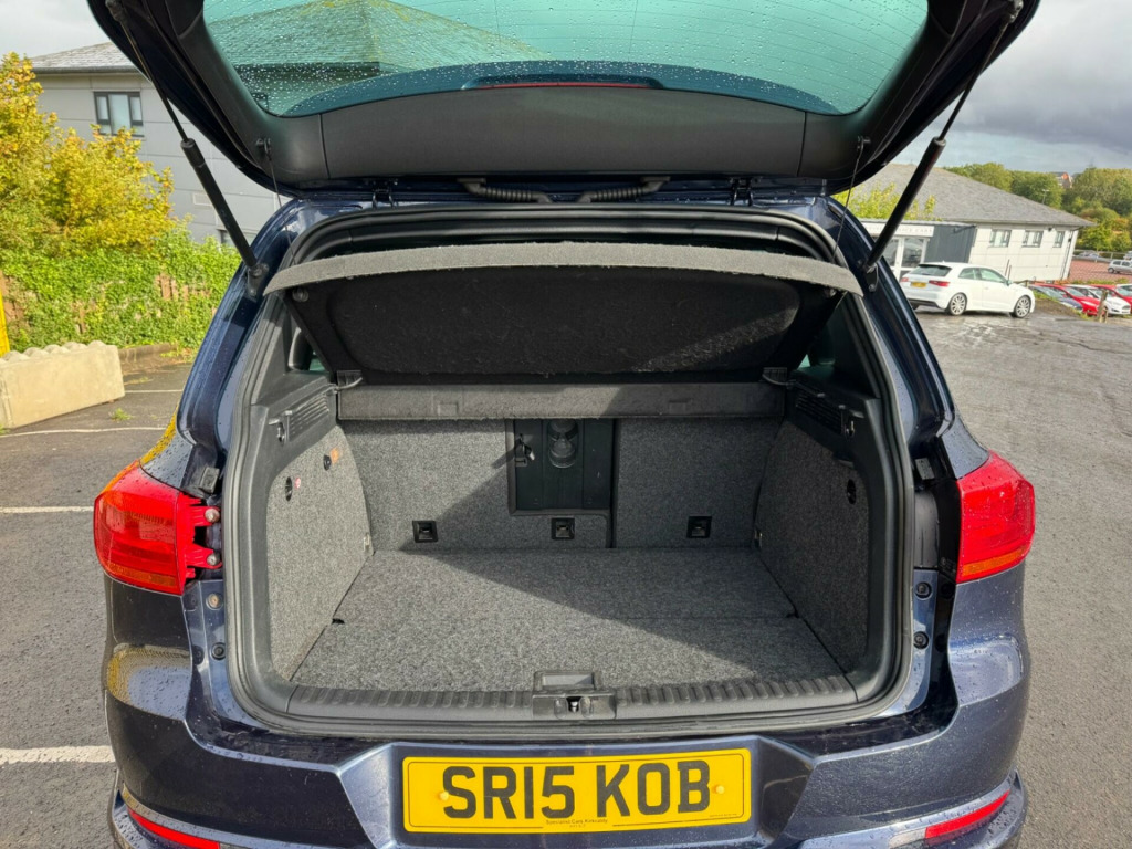 This 2015 Volkswagen Tiguan TDI R Line presents a superb ownership proposition, having been cherished by only two owners. Under the bonnet, you'll find a capable 2.0 litre diesel engine paired with a four wheel drive system, offering a substantial towing weight of 2200 kg. This R Line model boasts a range of convenient features, including Bluetooth for seamless phone connectivity, automatic headlights that activate based on dusk sensors, and front and rear parking sensors to aid manoeuvrability. Inside, you can enjoy the comfort of 2 zone electronic climate control with automatic air recirculation, ensuring a pleasant cabin environment for all occupants.The Tiguan TDI R Line is also notable for its low insurance group, which can offer a cost saving benefit compared to similar vehicles. This particular example's combination of low owner count, desirable R Line trim, and practical features like the four wheel drive and generous towing capacity make it a well rounded and appealing choice for those seeking a versatile SUV. v socket - centre console, 12v socket - luggage compartment, 18in alloy wheels - mallory, 2 zone electronic climate control with automatic air recirculation, 6cd autochanger - dash mounted, abs - anti-lock braking system, asr - anti slip regulation, air vent surrounds - steel finish, airbags - curtain, airbags - driver, airbags - front passenger, airbags - front passenger with deactivation switch, airbags - front seat side impact, alarm with interior protection, anti-theft wheel bolts, armrest - front centre with storage compartment, automatic dimming rear view mirror, aux-in socket, bluetooth telephone preparation, body coloured bumpers, body coloured door handles, body-coloured door mirrors with integrated indicators, bumpers - r-line design, carpet mats - front and rear, central locking - remote with 2 remote keys, chrome trimmed front air intake grille surround, colour screen - 5in, cup holders - front x2 rear x1, cup holders - rear x2, dab+ - digital radio reception, dashboard and centre console - anthracite metallic, daytime running lights - led, differential lock - electronic, door mirrors - body coloured, door mirrors - electrically adjustable and heated, driver alert system, dynamic curve lighting, ebd - electronic brake pressure distribution, esp - electronic stability programme, electric windows - front and rear, electronic engine immobiliser, electronic parking brake with auto hold function, flat tyre indicator, folding front seat backrest, folding table on back of front seats, footwell illumination - front, front aluminium scuff plates with r-line logo, front fog lights with cornering lights, front seat back storage pockets, front sports seats, glovebox - cooled and lockable, head restraints - front whiplash optimised, head restraints - front with r-line logo, headlight washer system, headlights - automatic range adjustment, headlights - bi-xenon - gas discharged, headlights - coming-leaving home function, headlights - dusk sensor - automatic driving lights, heated rear window, height and reach adjustable steering column, high level 3rd brake light, isofix child seat preparation for 2 rear seats, instrument lighting - white adjustable panel illumination, interior light delay, interior lighting delay, lights on warning buzzer, load-through provision, luggage compartment cover - removable, luggage compartment light, luggage compatrment - load lashing points x5, mdi - multi device interface with usb - ipod connection cables, mp3 compatible cd player, multifunction computer, park assist including parking sensors front and rear, parking sensors - front, parking sensors - rear, pedals - stainless steel, power assisted steering - speed sensitive, rcd 510 touch screen dab radio system, rns 315 touch screen satellite navigation and dab radio system, radiator grille - black with chrome louvres, rain sensor, reading lights - front x2, rear roof spoiler, rear wash wipe with intermittent wipe, rigid safety cell with front and rear crumple zones, roof lining - titanium black, roof rails - chrome plated, sd card reader, seatbelt reminder, seats - front comfort, seats - front lumbar support, seats - split folding rear backrests 60-40 - sliding and reclining, side window surrounds - chrome, side and rear protection pack - black with chrome-plated insert, silver metallic decorative inserts in door panels, spare wheel - space saver steel, speakers x8, split folding rear backrests 60-40, steering wheel - 3-spoke - leather trimmed, steering wheel - multifunction leather trimmed, storage compartment in drivers door for 1.0 litre bottle, storage compartment in passengers door for 1.5 litre bottle, storage compartment in roof console, storage tray in centre console, storage tray on dashboard, sun visors - vanity mirrors and illuminated, suspension - sports - not lowered, three rear head restraints, tinted glass - heat insulating rear 65 percent light absorbing from b pillar backwards, tyre pressure indicator, under seat drawers - front, unique bluemotion technology badging, unique r-line badging, unique r-line kick plates, warning triangle, windscreen wipers with intermittent wipe and 4 position delay