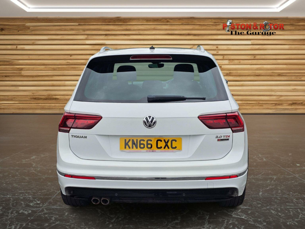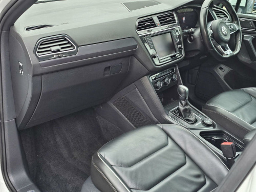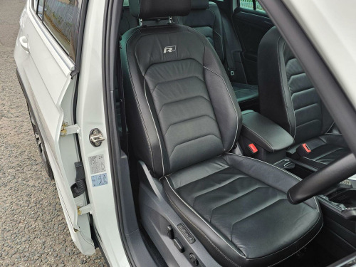 THIS SOUGHT AFTER AUTOMATIC 4 WHEEL DRIVE TIGUAN COMES WITH A FULL HISTORY, A NEW CAMBELT, A GEARBOX SERVICE AND 2 KEYS! THE CAR IS PRESENTED IN GLOSS WHITE WITH CHROME AND BLACK ACCENTS WITH R-LINE BODY KIT COMPLEMENTED BY 20 SILVER ALLOY WHEELS. THE 2.0 TDI ENGINE IS RELIABLE AND ECONOMICAL AND IS CONNECTED TO A SMOOTH DSG AUTOMATIC GEARBOX MAKING THIS CAR A GREAT DRIVE WHETHER OUT AND ABOUT LOCALLY, ON THE MOTORWAY WITH THE 4-MOTION ALL WHEEL DRIVE PROVIDING ASSISTANCE IN ALL WEATHERS! THE COMFORTABLE INTERIOR IS UPHOLSTERED IN FULL BLACK LEATHER WITH FRONT HEATED SEATS WITH EMBOSSED R-LINE LOGOS AND BRUSHED CHROME ACCENTS TO THE DOORS AND DASHBOARD PLUS THE CABIN CAN BE GIVEN AN AIRY FEEL BY OPENING THE ELECTRIC BLIND OF THE PANORAMIC SUNROOF. THE MULTI-FUNCTION STEERING WHEEL IS ALSO HEATED EQUIPMENT INCLUDES A LARGE COLOUR SCREEN WITH MULTIPLE APPS, VWS CAR NET CONNECT, DAB RADIO/CD, MEDIA STREAMING, DUAL ZONE CLIMATE CONTROL, FRONT AND REAR PARKING SENSORS, ADAPTIVE CRUISE CONTROL. ECO, NORMAL AND SPORT DRIVING MODES CAN BE SELECTED, ALONGSIDE A ROTARY CONTROLLER FOR 4X4 TERRAIN SELECTION. THE CAR ALSO HAS MANY ACTIVE AND PASSIVE SAFETY FEATURES WITH MUCH MORE YET TO BE DISCOVERED. WE HAVE FULLY INSPECTED AND SERVICED THIS CAR, SO THE ONLY ISSUE FOR ITS NEW OWNER WILL BE WHERE THE NEXT TRIP SHOULD BE. PLEASE CALL 0161 761 3452 (OPTION 2) TO ARRANGE A VIEWING, TO RESERVE THE CAR OR FOR MORE INFORMATION. WHILST EVERY EFFORT HAS BEEN MADE TO ENSURE THAT THE STATED SPECIFICATION IS ACCURATE, PLEASE CHECK WITH A MEMBER OF THE SALES TEAM IF A PARTICULAR SPECIFICATION/FEATURE IS IMPORTANT TO YOU.
