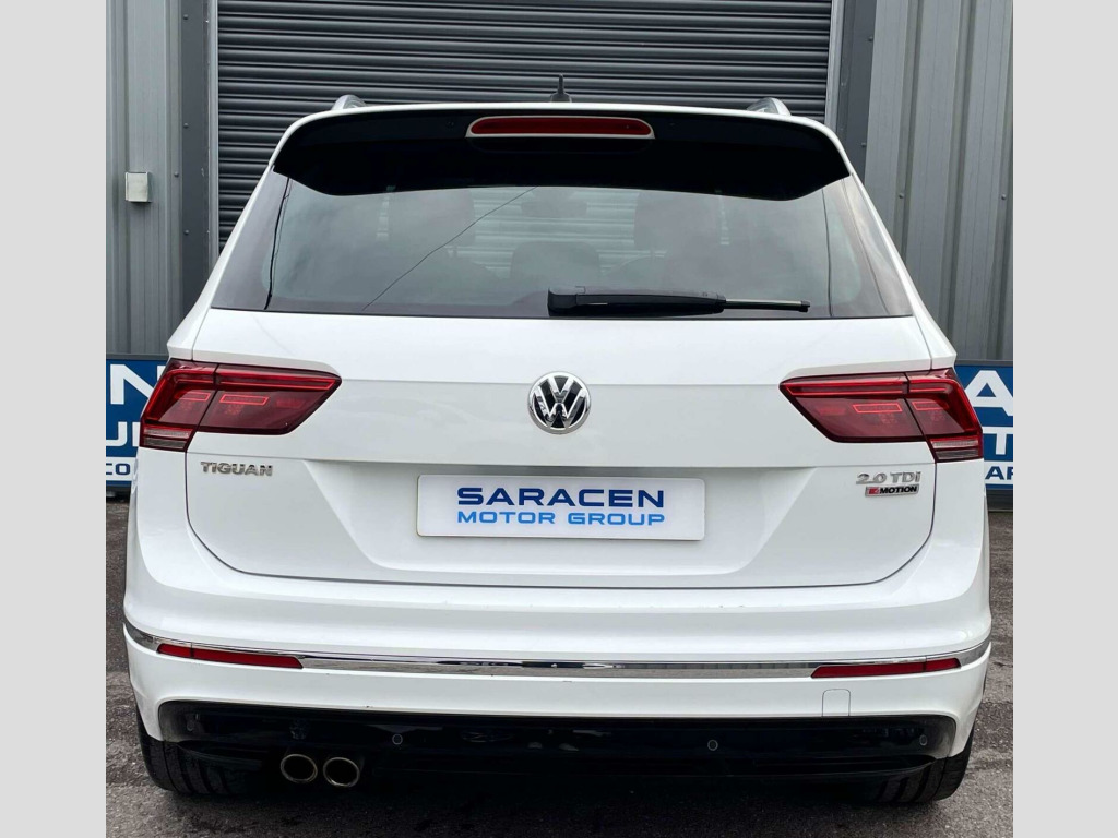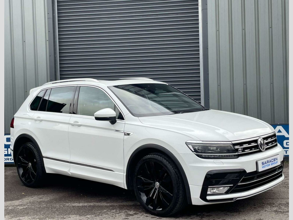 Volkswagen Tiguan 2.0 TDI BlueMotion Tech R-Line DSG 4Motion Euro 6 (s/s) 5dr. ULEZ Free. Finished in signature pure white and a half black Vienna leather interior with contrast stitching. 20 Suzuka gloss black alloys, satellite navigation, Apple CarPlay, Android Auto, sliding panoramic roof, Bluetooth connectivity, DAB radio, USB/AUX integration, adaptive cruise control, front/rear parking sensors, front/fatigue/lane assist, electric folding door mirrors, heated front washer nozzle, tinted rear glass, 3D effect tail lights, automatic headlights, dynamic light assist, front fog lights, ambient lighting, climate control, heated front seats, interior light package, leather multifunction steering wheel, winter pack and rain sensing wipers. Here at Saracen Motor Group we have been awarded AA Platinum dealership recognition along with being nominated for best customer service by Autotrader for 2021,2022,2023,2024 & 2025. We are a 5-star dealership with over 600 5-star reviews across all internet platforms including Autotrader and have been regarded as one of the best dealerships to buy from in the UK. Our preparation inspected each vehicle to the highest level possible for its age and mileage. You can rest assure your next car has been cared for to the highest standard. Service history, V5 and the HPI certificate will all be present on viewing and collection. With our location based in Battlesbridge, Essex you can enjoy a haggle-free buying experience where you can drive away the same day if prior arranged, additional fees apply please see our website for details.