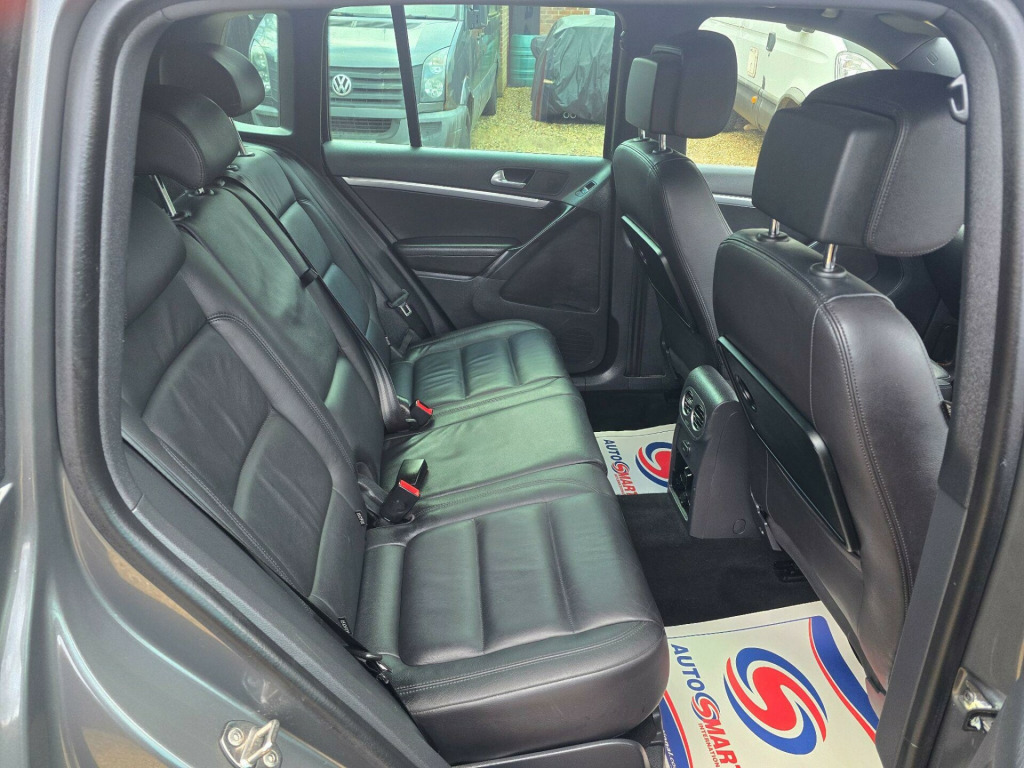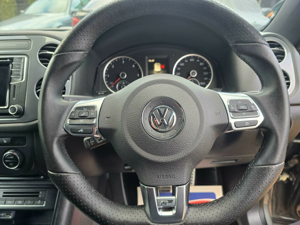 ***CAM BELT & WATER PUMP ALL UP TO DATE***SMALL SCUFF ON FRONT BUMPER HENCE BARGAIN PRICE***This 2015 Volkswagen Tiguan TDI R-Line Edition presents a remarkable opportunity with its exceptionally low mileage of just 68,000 miles and a history of only two owners. This Four Wheel Drive model is powered by an efficient 2.0 litre Euro 6 diesel engine, offering a substantial towing weight of 2500 kg. It comes equipped with advanced Bi-Xenon headlights that automatically adjust to light conditions thanks to a dusk sensor, and the convenience of Park Assist, which includes front and rear parking sensors to make manoeuvring effortless. Inside, you will appreciate the 2 Zone Electronic Climate Control for personalised comfort and Bluetooth connectivity for seamless audio streaming and calls.The R-Line Edition trim signifies a higher specification, and this particular Tiguan stands out from others in its class due to its thoughtful features and excellent condition. The combination of its low mileage, limited ownership, and Euro 6 emissions compliance makes it a sensible and appealing choice. Furthermore, its placement in a low insurance group highlights its cost effectiveness for everyday driving, making this Volkswagen Tiguan a well rounded and attractive proposition. v socket - centre console, 12v socket - luggage compartment, 18 degree angle of approach, 18in alloy wheels - mallory, 2 zone electronic climate control with automatic air recirculation, 3 years car net guide, abs plus - anti-lock braking system, asr - anti slip regulation, air vent surrounds - steel finish, airbags - curtain, airbags - driver, airbags - front passenger, airbags - front passenger with deactivation switch, airbags - front seat side impact, alarm with interior protection, anti-theft wheel bolts, armrest - front centre with storage compartment, automatic dimming rear view mirror, aux-in socket, bluetooth audio connection, bluetooth telephone preparation, body coloured bumpers, body coloured door handles, body-coloured door mirrors with integrated indicators, bumpers - r-line design, carpet mats - front and rear, central locking - remote with 2 remote keys, chrome trimmed front air intake grille surround, colour touch screen - 6.5in, cup holders - front x2, cup holders - rear x2, dab+ - digital radio reception, dash-mounted mp3 compatible cd player, dashboard and centre console - anthracite metallic, daytime running lights - led, differential lock - electronic, discover navigation touch-screen system, door mirrors - electrically adjustable and heated, door protectors - black with chrome insert, driver alert system, drivers seat height adjustment, dynamic curve lighting, ebd - electronic brake pressure distribution, esc - electronic stability control, electric windows - front and rear, electronic engine immobiliser, electronic parking brake with auto hold function, european mapping data, folding front seat backrest, folding table on back of front seats, footwell illumination - front, front fog lights with cornering lights, front passengers seat height adjustment, front seat back storage pockets, front sports seats, gear knob - leather, glovebox - cooled and lockable, head restraints - front whiplash optimised, head restraints - front with r-line logo, headlight washer system, headlights - automatic range adjustment, headlights - bi-xenon - gas discharged, headlights - coming-leaving home function, headlights - dusk sensor - automatic driving lights, heated front seats, heated rear window, height and reach adjustable steering column, height-adjustable front three-point seat belts with tensioners, high level 3rd brake light, isofix child seat preparation for 2 rear seats, instrument lighting - white adjustable panel illumination, interior light delay, led rear number plate lights, lights on warning buzzer, load-through provision, luggage compartment cover - removable, luggage compartment light, luggage compatrment - load lashing points x5, mdi - multi device interface, multifunction computer, park assist including parking sensors front and rear, parking sensors - front, parking sensors - rear, pedals - stainless steel, power assisted steering - speed sensitive, r-line - black wheel arch extensions, r-line - body coloured side skirts with matt chrome trim, radiator grille - black with chrome louvres, rain sensor, reading lights - front x2, rear roof spoiler, rear wash wipe with intermittent wipe, rigid safety cell with front and rear crumple zones, roof lining - titanium black, roof rails - chrome plated, sd card reader, seat-belt tensioners, seats - drivers 12-way electric adjustment, seats - drivers electric lumbar support, seats - drivers lumbar support, seats - passengers lumbar adjustment, seats - split folding rear backrests 60-40 - sliding and reclining, side window surrounds - chrome, silver metallic decorative inserts in door panels, sound output - 4x20 watt, spare wheel - space saver steel, speakers x8, start-stop button, steering wheel - 3-spoke - leather trimmed - multifunction with aluminium inserts and r-line logo, steering wheel - multifunction, storage compartment in drivers door for 1.0 litre bottle, storage compartment in passengers door for 1.5 litre bottle, storage compartment in roof console, storage tray in centre console, storage tray on dashboard, styling pack for r-line, sun visors - vanity mirrors and illuminated, suspension - sports - not lowered, tcs - traction control system, tmc plus - traffic message channel, think blue - trainer - driver tips - journey analysis, three rear head restraints, tinted glass - heat insulating rear 65 percent light absorbing from b pillar backwards, traffic sign recognition, tyre pressure loss indicator, unique r-line badging, unique r-line door sill protectors, warning buzzer and light for front seat belts if unfastened, warning triangle, windscreen wipers with intermittent wipe and 4 position delay