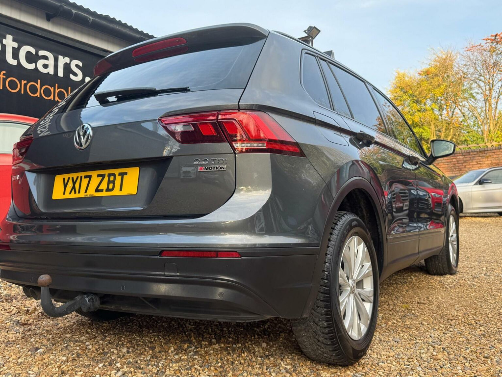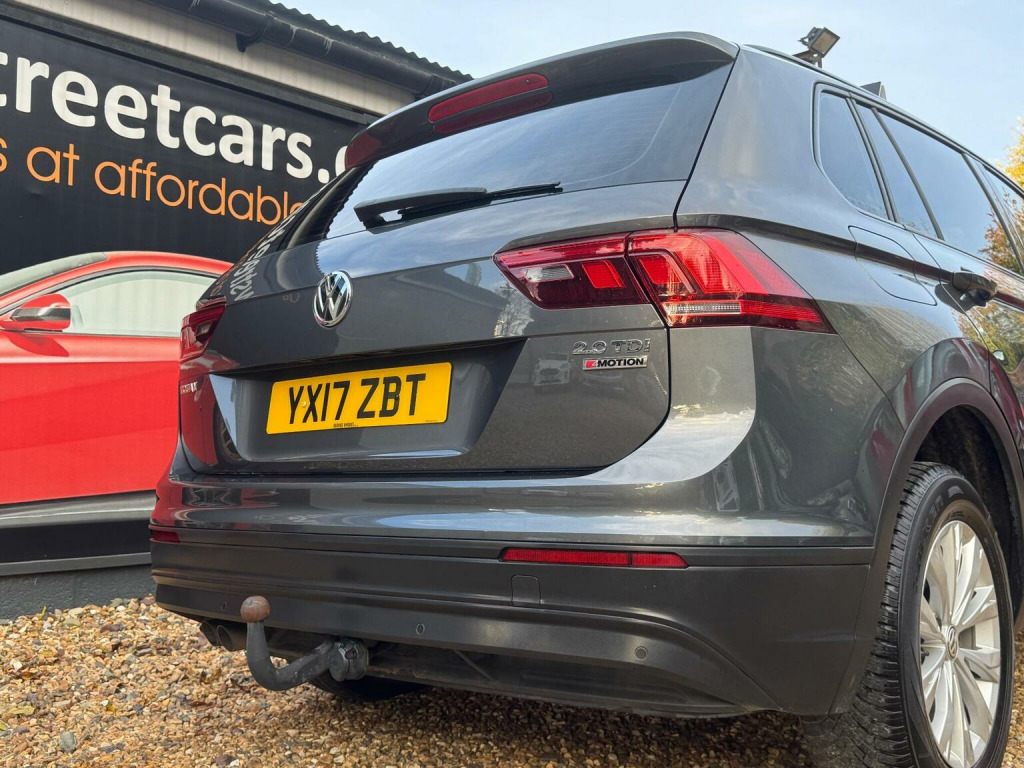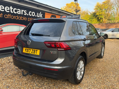 This 2017 Volkswagen Tiguan TDI S presents an exceptional opportunity with its remarkably low mileage of just 59,000 miles for its age. This four wheel drive model, equipped with a 2.0 litre Euro 6 diesel engine, offers a robust and capable driving experience. The S trim level includes practical features such as manual air conditioning and automatic headlamp activation with separate daytime running lights, as well as a convenient leaving home and manual coming home feature. For enhanced driving control, it boasts Driver Profile Selection with Eco, Normal, and Sport modes, complemented by a rotary switch near the gear stick offering Onroad, Offroad, Snow, and Offroad Individual driving modes. Bluetooth phone connectivity is also included for seamless communication on the go. This Tiguan stands out with its impressive fuel economy, achieving approximately 50 miles per gallon, which is a significant advantage for running costs compared to many similar vehicles. Its low insurance group rating further contributes to its affordability. The vehicle also offers substantial boot space, making it ideal for families or those who require ample storage. Furthermore, its towing weight capacity of 2500 kg means it is well suited for towing caravans or trailers. We are proud to present this Volkswagen Tiguan 2.0 TDI BlueMotion Tech S DSG 4Motion Euro 6 (s/s) 5dr that comes with a service history for added peace of mind. It comes with 2 keys and 2 owner and has just been serviced. 12 months MOT included, You have the option to purchase RAC warranty with the option to extend.At New Street Car Centre we have over 25 years experience as the largest and most trusted used car dealership in Telford. We offer award winning customer service, great prices and excellent preparation standards. Each vehicle undergoes quality control inspections and a complimentary history check for your added peace of mind.we have also included additional specification but please always check the exact specification details with ourselves prior to purchase as models can varyh