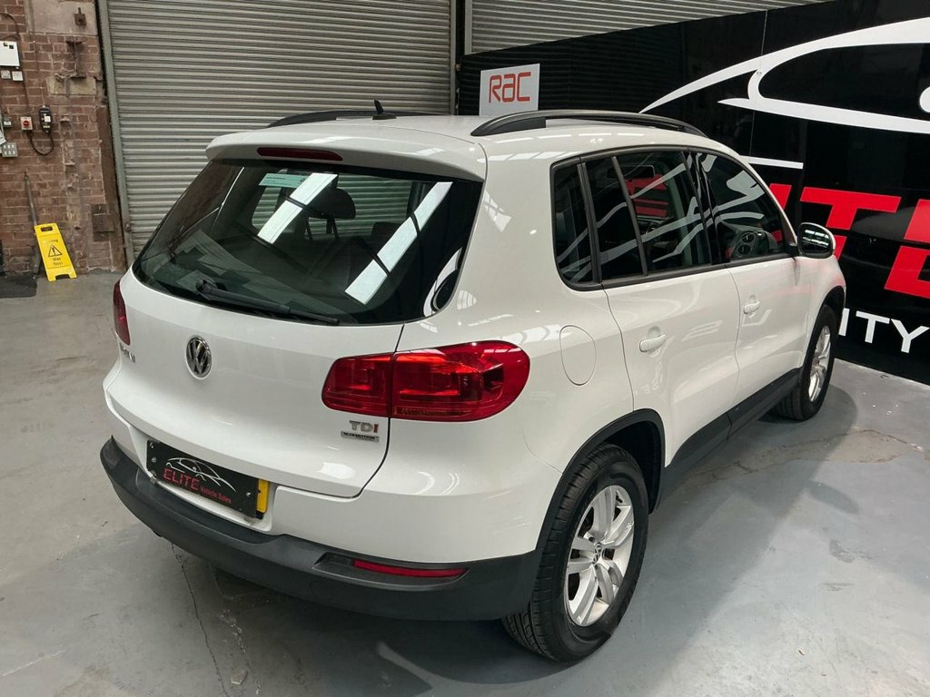 Elite Vehicle Sales are proud to present the ever popular and sought after VW Tiguan Bluemotion TDi, Finished in stunning "Pure White" The exterior looks are complimented by the Black roof rails, Stepping into the interior and you are treated with a impressive spec list that includes FM/AM Radio, Bluetooth Hands Free, Air Conditioning, The Tiguan is fitted with the ultra reliable 2.0TDi engine that is renowned for its reliability & has an impressive fuel consumption of around 53 MPG, This is the ideal family car with its low emissions & excellent fuel economy. Pure White, Bluetooth Telephone Preparation, 12V Socket - Centre Console, 12V Socket - Luggage Compartment, 16in Alloy Wheels - Portland, ABS - Anti-Lock Braking System, ASR - Anti Slip Regulation, Air Conditioning - Manual, Air Vent Surrounds - Steel Finish, Airbags - Curtain, Airbags - Driver, Airbags - Front Passenger, Airbags - Front Passenger with Deactivat, Airbags - Front Seat Side Impact, Alarm with Interior Protection, Anti-Theft Wheel Bolts, Aux-In Socket, Body Coloured Bumpers, Body Coloured Door Handles, Body-Coloured Door Mirrors with Integrat, Central Locking - Remote with 2 Remote K, Cup Holders - Front x2 Rear x1, Cup Holders - Rear x2, DAB+ - Digital Radio Reception, Dash-mo