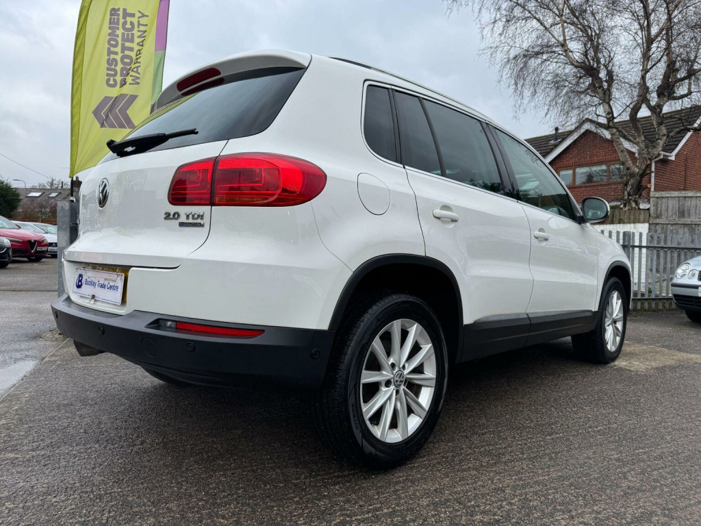 **ALL VIEWING BY APPOINTMENT** GREAT VALUE SUV-BLUETOOTH-This 2013 Volkswagen Tiguan TDI SE presents a compelling proposition with its partial service history, offering a good indication of its past care. This well equipped model features a 2.0 litre diesel engine and SE trim, providing a balanced blend of performance and efficiency. For added convenience, it includes rear parking sensors with parking assistance, and a Bluetooth telephone preparation system. The cabin benefits from 2 zone electronic climate control with automatic air recirculation, ensuring a comfortable environment for all occupants. Furthermore, dusk sensing headlights automatically activate the driving lights, and the advanced Park Assist system, complete with front and rear parking sensors, makes manoeuvring in tight spaces significantly easier. WILL BE SUPPLIED WITH WARRANTY AND BREAKDOWN COVER FOR THAT EXTRA PIECE OF MIND -ALL VIEWING BY APPOINTMENT-LOW DEPOSIT FINANCE AVAILABLE PLEASE VISIT OUR WEBSITE FOR MORE INFORMATION, This Volkswagen Tiguan TDI SE is designed to be economical to run, boasting an impressive fuel economy of 53 miles per gallon. Its low CO2 emissions and low insurance group rating further contribute to its affordability, indicating that it is a more cost effective choice compared to many other vehicles in its class. These highlights make it an attractive option for those seeking a practical and economical SUV.