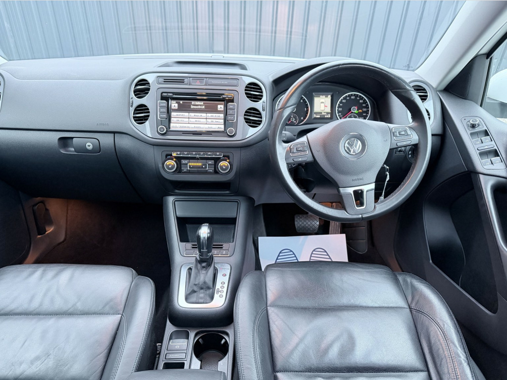 ABSOLUTELY STUNNING VW TIGUAN 4X4 IN WHITE, FEATURING FULL LEATHER INTERIOR WITH HEATED FRONT SEATS, ELECTRIC DRIVERS SEAT WITH LUMBAR SUPPORT, ELECTRIC SLIDING PANORAMIC SUNROOF, LANE ASSIST TO KEEP YOU SAFELY WITHIN YOUR LANE, FRONT, REAR AND SIDE PARKING SENSORS WITH PARK ASSIST, AUTO HEADLIGHTS WITH HIGH BEAM ASSIST, DUAL CLIMATE CONTROL, CRUISE CONTROL, BLUETOOTH HANDSFREE AND AUDIO, 6-CD CHANGER, SD CARD READER, ELECTRIC HANDBRAKE WITH AUTO HOLD FUNCTION, 17-INCH BLACK ALLOY WHEELS, SERVICE HISTORY AND SUPPLIED WITH 2 KEYS, AND COMES WITH A MINIMUM OF 6 MONTHS MOT, PRE-DELIVERY INSPECTION, SAFETY CHECK, HPI CHECK, FINANCE OPTIONS, 6 MONTHS COMPREHENSIVE WARRANTY, SERVICE IF DUE WITHIN 3000 MILES OR THREE MONTHS, AND HAS BEEN ROAD TESTED FOR A MINIMUM OF 100 MILES FOR YOUR COMPLETE PEACE OF MIND. 17in Alloy Wheels - Philadelphia, 18 Degree Front Module, 2 Zone Electronic Climate Control with Automatic Air Recirculation, 6CD Autochanger - Dash Mounted, ASR - Anti Slip Regulation, Air Vent Surrounds - Steel Finish, Alarm with Interior Protection, Automatic Dimming Rear View Mirror, Bluetooth Telephone Preparation, Body Coloured Bumpers and Door Handles, Chrome Trimmed Front Air Intake Grille Surround, Dashboard and Centre Console - Anthracite Metallic, Differential Lock - Electronic, Door Mirrors - Electrically Adjustable and Heated, Driver Alert System, EBD - Electronic Brake Pressure Distribution, ESP - Electronic Stability Programme, Electronic Parking Brake with Auto Hold Function, Folding Front Seat Backrest, Folding Table on Back of Front Seats, Footwell Illumination - Front, Front Fog Lights with Cornering Lights, Front Sports Seats, Head Restraints - Front Whiplash Optimised, Headlights - Dusk Sensor - Automatic Driving Lights, Headlights - Dusk Sensor with Coming-Leaving Home Function, Headlights - Halogen Clear - Range Adjustable, High Beam Assist, Instrument Lighting - White Adjustable Panel Illumination, Interior Light Delay, Lane Assist with High Beam Assist, Load-Through Provision, Luggage Compartment Light, Luggage Compatrment - Load Lashing Points x5, MDI - Multi Device Interface with USB - iPod Connection Cables, Panoramic Sunroof, Park Assist including Parking Sensors Front and Rear, Parking Sensors - Front, Parking Sensors - Rear, RCD 510 Touch Screen DAB Radio System, Reading Lights - Front x2, Rear Wash Wipe with Intermittent Wipe, Rigid Safety Cell with Front and Rear Crumple Zones, Roof Rails - Chrome Plated, SD Card Reader, Seatbelt Reminder, Seats - Front Comfort, Seats - Split Folding Rear Backrests 60-40 - Sliding and Reclining, Side Window Surrounds - Chrome, Side and Rear Protection Pack - Black with Chrome-Plated Insert, Silver Metallic Decorative Inserts in Door Panels, Speakers x8, Static Cornering Function, Sun Visors - Vanity Mirrors and Illuminated, Three Rear Head Restraints, Tinted Glass - Heat Insulating Rear 65 Percent Light Absorbing from B Pillar Backwards, Unique BlueMotion Technology Badging, Warning Triangle, Windscreen Wipers with Intermittent Wipe and 4 Position Delay