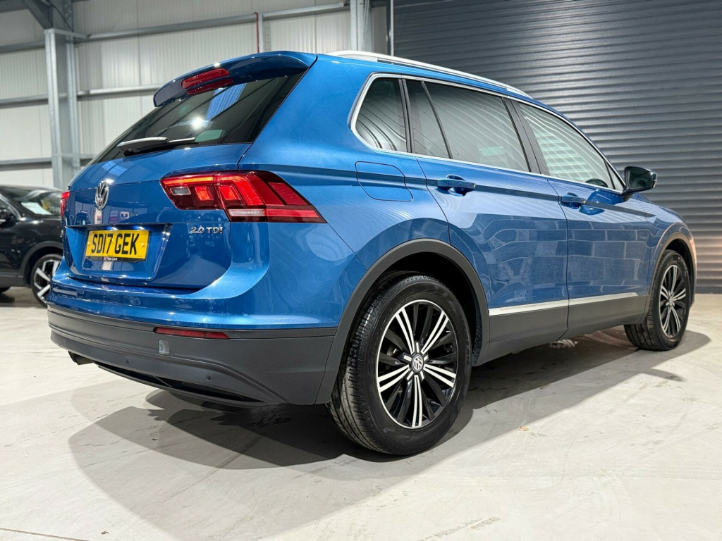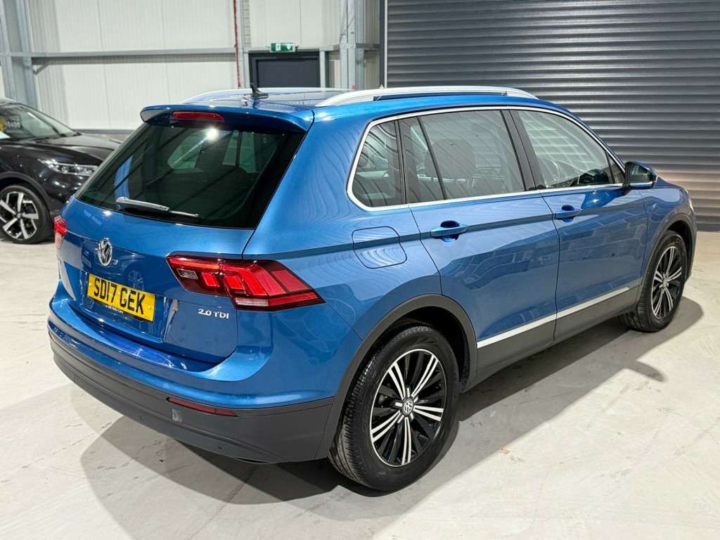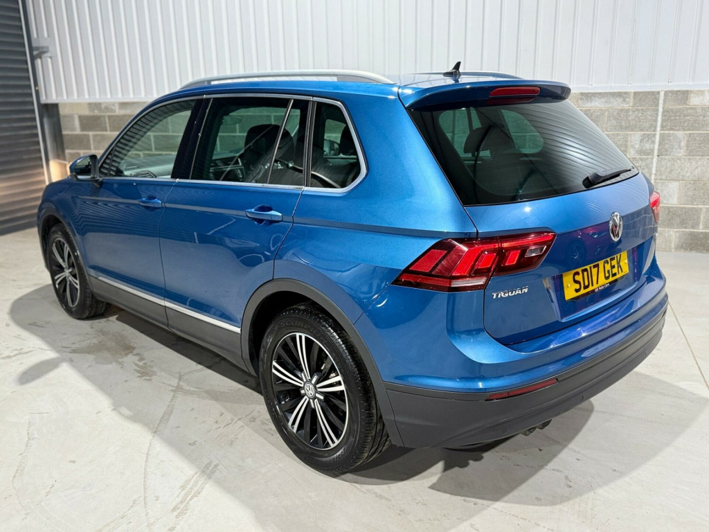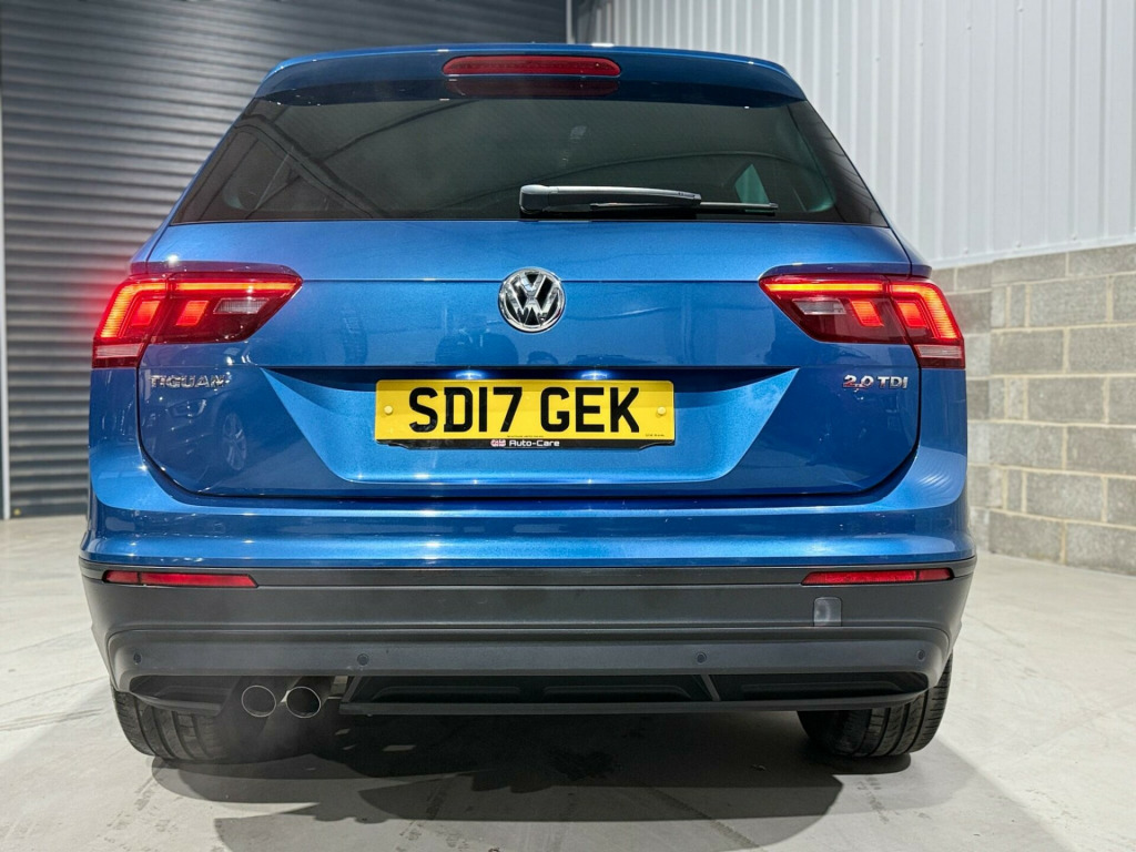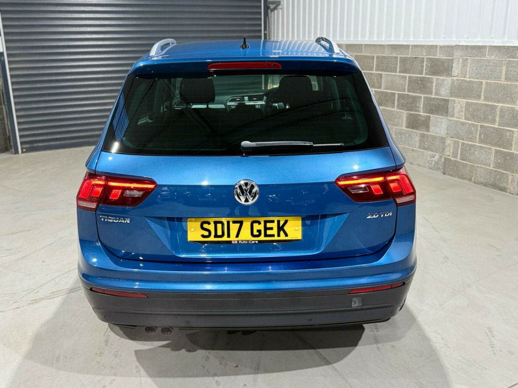 GB Auto-Care presents this stunning Volkswagen Tiguan 2.0 TDI BlueMotion Tech SE DSG Euro 6 (s/s) 5dr. Boasting huge spec and sportiness! Car has a stack of paperwork to go with full service history. Comes with a fresh MOT until July 26, vehicle will go through our onsite workshop for a full Pre sale Mechanical Inspection and a full service, will leave us with a 6 month premium Warranty with nationwide breakdown included and with options to extend. FINANCE AVAILABLE NATIONWIDE HOME DELIVERY PART X WELCOMEWith a full service history and MOT valid until July 2026, this 2017 Volkswagen Tiguan TDI SE offers excellent peace of mind. This Euro 6 compliant model features a 2.0 litre diesel engine and comes with a 6 month warranty. Its vehicle history check is clear, and the last service was completed on 12 November 2025 at 76,467 miles. Notable features include adaptive cruise control with front parking sensors, an electric tailgate, tyre pressure monitoring, and climate control. You'll also benefit from front and rear parking sensors, making manoeuvring straightforward.This Volkswagen Tiguan stands out with its impressive 58 mpg fuel economy, indicating it is more economical than many similar vehicles. Its low CO2 emissions are also a positive attribute, suggesting a more environmentally conscious choice. Furthermore, the Tiguan boasts a large boot space, offering practicality for all your needs, and it sits in a low insurance group, which can help to reduce your running costs. uise control - adaptive, tyre pressure monitoring system, tailgate - electric, 12v power outlet on the rear centre console, 18in alloy wheels - patagonia, 2 led entrance-warning lights - front, 3 rear head restraints - all lowerable, abs with brake assist system - anti-slip regulation-asr - electronic locking differential-edl - engine drag torque control-edtc - trailer stabilisation and xds, active bonnet, airbag for driver and front passenger with front passenger airbag deactivation, airbags - drivers knee, alarm with interior protection, armrest - front centre with storage compartment, automatic hazard light activation under heavy braking, automatic headlamp activation with separate daytime running lights - leaving home feature and manual coming home feature, bluetooth phone connectivity, car-net app connect, carpet mats - front and rear, central locking system with radio remote control and 2 keys, chrome trimmed radiator grille - top and bottom, chrome trimmed side windows, climate control, coasting function, cruise control with speed limiter, cup holders - front x2, decorative inserts in titan silver, door mirrors - electrically folding, electric windows - front and rear, electronic engine immobiliser, electronic parking brake with auto hold function, electronic stability control with multiple collision brake - esc - including anti-lock brake system, exterior mirror housings and door handles in body colour, fatigue assist - drowsiness detection, first aid kit and warning triangle, front assist with pedestrian monitoring detection and city emergency braking, front fog lights with static cornering function, front passenger seat has release lever for fold down function when carrying longer loads, front side airbag with curtain airbag, front storage compartment with 12v socket, front windshield wipers with intermittent operation and rain sensor, gearshift knob in leather, glasses storage holder in roof, glove compartment - lockable - illuminated and with cooling capability, head airbag system for front and rear passengers including side airbags, headlights - halogen, high beam assist, hill hold assist, isofix anchors for 2 outer rear seats - easily accessible, indicator lights and service interval display, instrument cluster with electronic speedometer and odometer and trip odometer - tachometer, interior light in front footwell, interior lighting - front and rear with interior delay and dimming function, interior mirror dimmable, lane assist, license plate with led illumination, load lashing points x4 in luggage compartment, load-through capability in the rear seat bench including centre armrest, loading edge protection in plastic, lower exterior body trim in black plastic, luggage compartment cover - removable, luggage compartment light, manually adjustable lumbar support, map pockets on the backs of the front seats, misfuel prevention device, multifunction colour display, one touch indicator, parking sensors - front and rear, power steering - electromechanical, pre-crash preventive occupant protection, radio mib composition media 8in colour touchscreen - 8 loudspeakers with cd - sd slot - aux-in jack and dab radio, rear seat bench not split - backrest split folding 40-20-40, remote unlocking for trunk lid via key, roof rails - silver anodised, safety-optimised head restraints - front longitudinally adjustable and height-adjustabe - release button integrated in head restraints, seats - front comfort, seats - height adjustment - front, side door sills with chrome inserts, sliding rear bench seat, spare wheel - space saver steel, steering column with height and longitudinal adjustment, steering wheel - multifunction - leather trimmed, storage box in all doors for 1.5l bottle and 2 side storage compartments in the boot, storage compartment with lid on front dashboard, sun visors - front with illuminated vanity mirror, temperature display - external, three rear 3-point seat belts, tinted glass - 65 percent tinted, tray on rear of front seats - rubberised for non slip with cup holder to the side - cable secure hook to left, two three point height adjustable seatbelts at front with pretensioners, tyre pressure loss indicator, under seat drawers - front, variable boot floor, warning light for low washer fluid, warning lights for open boot lid and doors, warning sound and light for unfastened seat belts - front and rear, white instrument lighting