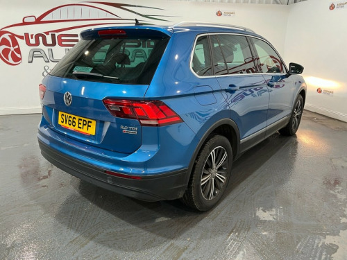 Volkswagen Tiguan 2.0 TDI BlueMotion Tech SE Navigation SUV 5dr Diesel Manual 4Motion Euro 6 (s/s) (150 PS). Supplied with two keys and Full Volkswagen Main Dealer service history recorded at 8, 17, 33, 42, 52, 63, 68 and 75 thousand miles. This well-equipped Tiguan offers strong performance, 4Motion capability and excellent efficiency from its Euro 6 2.0 TDI engine. The specification includes alloy wheels, heated power-folding door mirrors, automatic headlights, cruise control and climate control. It also features satellite navigation, Bluetooth, DAB radio, Apple CarPlay and front and rear parking sensors for effortless manoeuvring and connectivity. A practical, refined and family-friendly SUV with the build quality and reliability you expect from Volkswagen. 12V Power Outlet on the Rear Centre Cons, 18in Alloy Wheels - Patagonia, 2 LED Entrance-Warning Lights - Front, 3 Rear Head Restraints - All Lowerable, ABS with Brake Assist System - Anti-slip, Active Bonnet, Airbag for Driver and Front Passenger wi, Airbags - Drivers Knee, Alarm with Interior Protection, Armrest - Front Centre with Storage Comp, Automatic Hazard Light Activation Under , Automatic Headlamp Activation with Separ, Bluetooth Phone Connectivity, Body Coloured Bumpers and Door Handles, Body-Coloured Door Mirrors with Integrat, Car-Net App Connect, Carpet Mats - Front and Rear, Central Locking System with Radio Remote, Chrome Trim on Radiator Grille - Upper a, Chrome Trimmed Radia