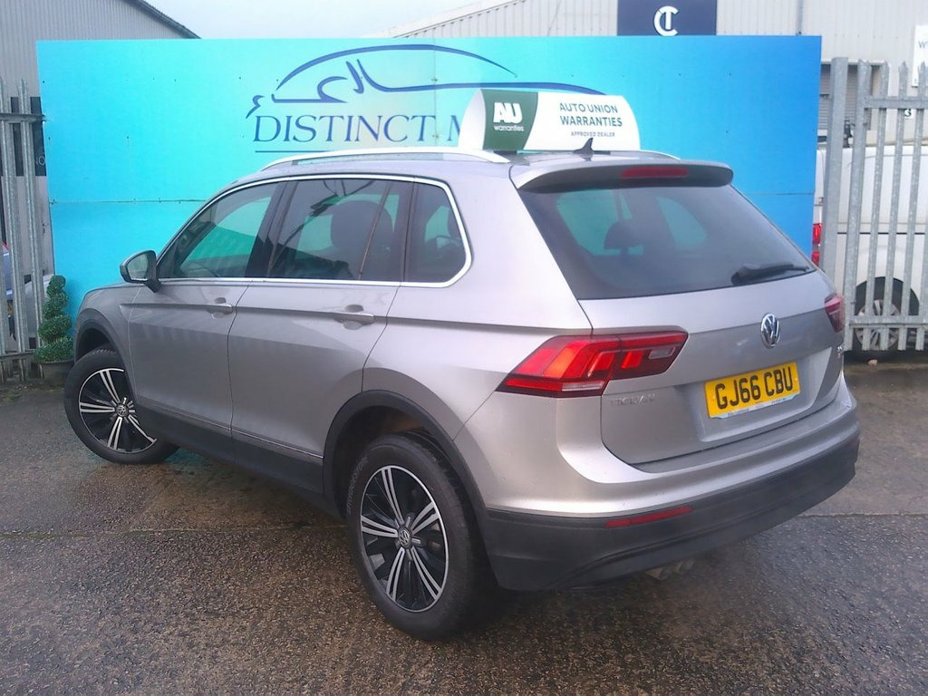 A LOVELY EXAMPLE TYPICALLY ECONOMICAL AND SPACIOUS VW TIGUAN TECH SE NAVIGATION EDITION 4WD AUTO IN METALLIC SILVER COVERED ONLY 61K WARRANTED MILES WITH 15 MONTHS NATIONWIDE WARRANTY FOR THIS WEEK ONLY FOR ADDED PEACE OF MIND. ONLY 2 FORMER OWNERS FROM NEW OFFERED WITH EXCELLENT SERVICE HISTORY (10 SERVICES COMPLETED LAST SERVICED AT 58K MILES WITH THE VITAL CAM-BELT AND WATER PUMP CHANGE DONE AT 58K MILES WITH 6 SERVICES COMPLETED AT VW MAIN AGENTS), LONG MOT TO 12/26 WITH NO ADVISORIES ,2 KEYS, FULLY HPI CLEAR WITH FULLY WARRANTED MILEAGE CHECKS COMPLETED TOO. WE ARE A FAMILY RUN BUSINESS WITH MOST OF OUR VEHICLES PURCHASED FROM REPUTABLE MAIN AGENTS AND WE PREPARE OUR VEHICLES TO THE HIGHEST OF STANDARDS WHICH IS WHY WE ARE CONFIDENT ENOUGH TO OFFER 15 MONTHS NATIONWIDE WARRANTY. BOTH THE INTERIOR AND EXTERIOR CONDITION CLEARLY WELL APPRECIATED AND MAINTAINED THROUGHOUT WITH GREAT SPECIFICATION INCLUDING ALLOY WHEELS, SAT-NAV, CLIMATE CONTROL, FRONT AND REAR ELECTRIC WINDOWS, BLUETOOTH, CRUISE CONTROL, HEATED ELECTRIC MIRRORS, FRONT AND REAR PARKING SENSORS, REMOTE CENTRAL LOCKING AND MUCH MORE! 12V Power Outlet on the Rear Centre Cons, 18in Alloy Wheels - Patagonia, 2 LED Entrance-Warning Lights - Front, 3 Rear Head Restraints - All Lowerable, ABS with Brake Assist System - Anti-slip, Active Bonnet, Airbag for Driver and Front Passenger wi, Airbags - Drivers Knee, Alarm with Interior Protection, Armrest - Front Centre with Storage Comp, Automatic Hazard Light Activation Under , Automatic Headlamp Activation with Separ, Bluetooth Phone Connectivity, Car-Net App Connect, Carpet Mats - Front and Rear, Central Locking System with Radio Remote, Chrome Trimmed Radiator Grille - Top and, Chrome Trimmed Side Windows, Climate Control, Coasting Function, Cruise Control with Speed Limiter, Cu