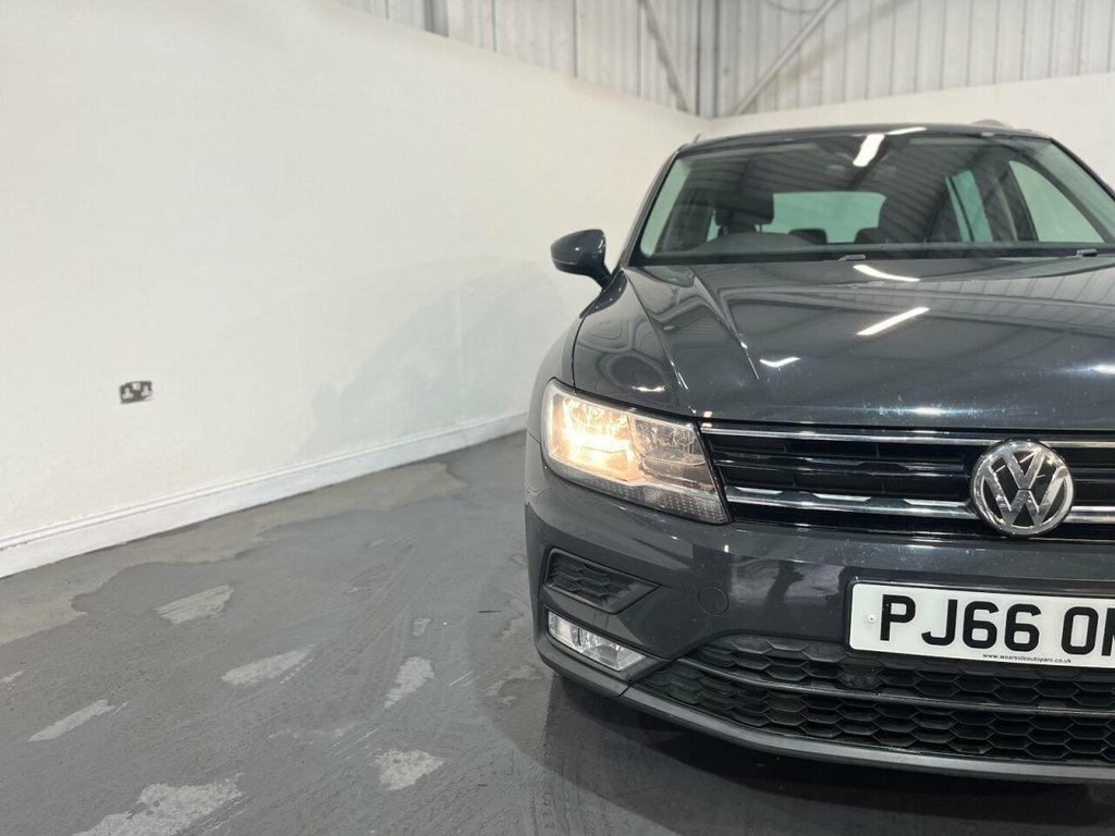 VOLKSWAGEN TIGUAN 2.0 TDI BlueMotion Tech SE Navigation SUV 5dr Diesel Manual Euro 6 (s/s) (150 ps). Supplied with two keys and a full service history recorded at 15, 26, 38, 52, 62 and 71 thousand miles, this Tiguan has been consistently maintained and cared for. Powered by the strong and efficient 2.0 TDI diesel engine producing 150 ps, paired with a smooth manual gearbox, it delivers an excellent balance of performance and economy. The BlueMotion Tech model also benefits from stop/start technology to improve fuel efficiency and reduce emissions. Specification includes alloy wheels, front and rear parking sensors, heated folding door mirrors, automatic lights, climate control, Apple CarPlay, satellite navigation, DAB radio, Bluetooth connectivity and cruise control. A practical, spacious and economical family SUV with a great level of specification and a comprehensive service record. 12V Power Outlet on the Rear Centre Cons, 18in Alloy Wheels - Patagonia, 2 LED Entrance-Warning Lights - Front, 3 Rear Head Restraints - All Lowerable, ABS with Brake Assist System - Anti-slip, Active Bonnet, Airbag for Driver and Front Passenger wi, Airbags - Drivers Knee, Alarm with Interior Protection, Armrest - Front Centre with Storage Comp, Automatic Hazard Light Activation Under , Automatic Headlamp Activation with Separ, Bluetooth Phone Connectivity, Body Coloured Bumpers and Door Handles, Body-Coloured Door Mirrors with Integrat, Car-Net App Connect, Carpet Mats - Front and Rear, Central Locking System with Radio Remote, Chrome Trim on Radiator Grille - Upper a, Chrome Trimmed Radia