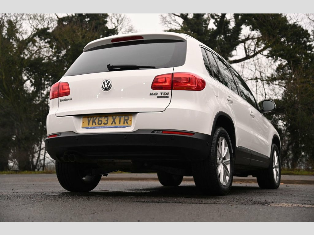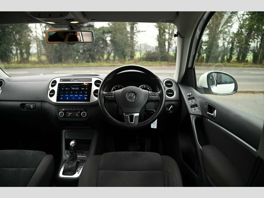 Prestige Car Supermarket in York presents this 2013 Volkswagen Tiguan 2.0 TDI BlueMotion Tech SE SUV, a capable and well specified 4WD automatic producing 140 ps and finished in Pure White. This example benefits from an aftermarket Android in car entertainment display alongside the factory multifunction computer, SD card reader, AUX input and eight speaker audio system, enhancing connectivity and usability. The exterior is complemented by 17in Philadelphia alloy wheels, chrome roof rails, chrome window surrounds and BlueMotion Technology badging, while practical touches include front fog lights with cornering function, rain sensing wipers and automatic dusk sensing headlights with coming and leaving home function. Inside, the cabin features front sports seats with lumbar support, a leather trimmed multifunction steering wheel, anthracite metallic dashboard and centre console, and a cooled, lockable glovebox. Comfort is ensured with two zone electronic climate control, automatic dimming rear view mirror, footwell illumination and electric windows front and rear. Practicality is a strong point with sliding and reclining 60-40 split folding rear seats, load through provision, under seat drawers, folding tables on the front seat backs and a versatile luggage compartment with cover and load lashing points. Safety and control are covered by ABS, ESP, ASR, electronic differential lock, multiple airbags, driver alert system, ISOFIX rear seat preparation, electronic parking brake with Aftermarket Android In Car Entertainment, Pure White, 12V Socket - Centre Console, 12V Socket - Luggage Compartment, 17in Alloy Wheels - Philadelphia, 18 Degree Front Module, 2 Zone Electronic Climate Control with A, ABS - Anti-Lock Braking System, ASR - Anti Slip Regulation, Air Vent Surrounds - Steel Finish, Airbags - Curtain, Airbags - Driver, Airbags - Front Passenger, Airbags - Front Passenger with Deactivat, Airbags - Front Seat Side Impact, Alarm with Interior Protection, Anti-Theft Wheel Bolts, Armrest - Front Centre with Storage Comp, Automatic Dimming Rear View Mirror, Aux-In Socket, Body Coloured Bumpers, Body Coloured Door Handles, Body-Coloured Door Mirrors with Integrat, Centra