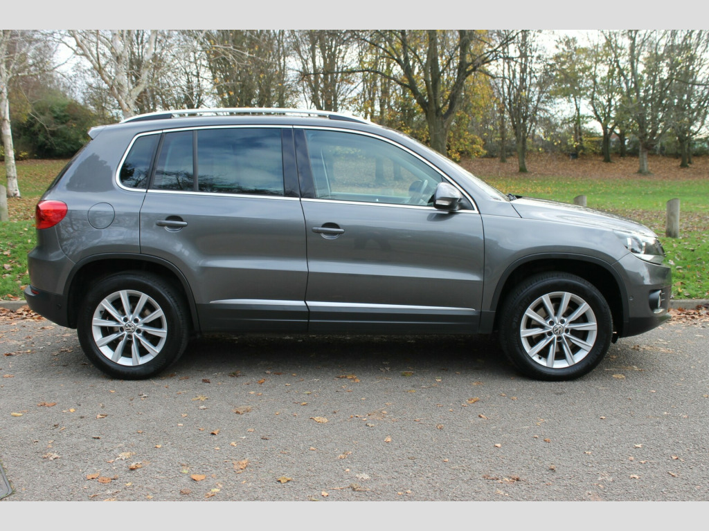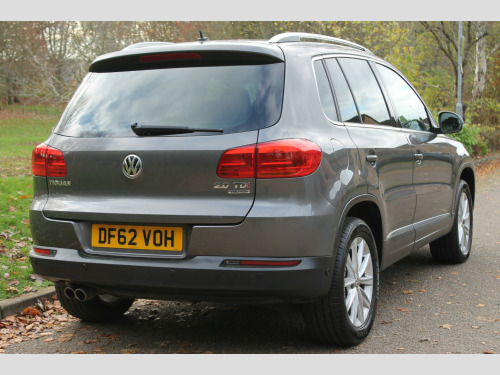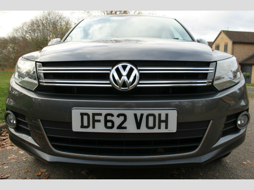 A LOVELY ONE LADY OWNER TIGUAN 4 WHEEL DRIVE WITH THE HIGHER HORSEPOWER 2.0 TDI ENGINE. EXCELLENT MAINTENANCE RECORD WITH 10 SERVICES CARRIED OUT INCLUDING A TIMING BELT REPLACEMENT IN 2020. EXCELLENT TREAD ON ALL 4 TYRES. AN ADVISE FREE MOT WHICH WILL DO AGAIN UPON SALE. WE HAVE 2 KEYS AND A COMPLETE INSTRUCTION BOOK PACK.With only one owner and a full service history, this 2013 Volkswagen Tiguan TDI SE represents excellent provenance. This four wheel drive model is equipped with a 2.0 litre diesel engine and boasts a very low mileage of just 81,000 miles for its age. It comes with a 3 month warranty and 12 months MOT provided on purchase. Notable features include a towbar, front and rear parking sensors, and Park Assist, making manoeuvring easier. The 2 Zone Electronic Climate Control ensures a comfortable cabin temperature for all occupants. This Volkswagen Tiguan offers impressive performance, achieving 0-62mph in 8.9 seconds, which is a strong indicator of its capability compared to similar vehicles. Its fuel economy is also a highlight, delivering an excellent 49 mpg, demonstrating efficiency for its class. With a towing weight of 2200 kg, this Tiguan is well suited for a variety of needs. The last service was completed at 75,046 miles, further underscoring its well maintained condition. 3 months warranty, Next MOT due 26/02/2026, Last serviced at 75,046 miles, Full service history, 1 owner Upgrades - Towbar, Alcantara - Flanell Grey, Standard Features - 12V Socket - Centre Console, 12V Socket - Luggage Compartment, 17in Alloy Wheels - Philadelphia, 18 Degree Front Module, 2 Zone Electronic Climate Control with Automatic Air Recirculation, 6CD Autochanger - Dash Mounted, ABS - Anti-Lock Braking System, ASR - Anti Slip Regulation, Air Vent Surrounds - Steel Finish, Airbags - Curtain, Airbags - Driver, Airbags - Front Passenger, Airbags - Front Passenger with Deactivation Switch, Airbags - Front Seat Side Impact, Alarm with Interior Protection, Armrest - Front Centre with Storage Compartment, Automatic Dimming Rear View Mirror, Bluetooth Telephone Preparation, Body Coloured Bumpers and Door Handles, Body-Coloured Door Mirrors with Integrated Indicators, Central Locking - Remote with 2 Remote Keys, Chrome Trimmed Front Air Intake Grille Surround, Cup Holders - Front x2 Rear x1, Cup Holders - Rear x2, Dashboard and Centre Console - Anthracite Metallic, Differential Lock - Electronic, Door Mirrors - Electrically Adjustable and Heated, Driver Alert System, EBD - Electronic Brake Pressure Distribution, ESP - Electronic Stability Programme, Electric Windows - Front and Rear, Electronic Engine Immobiliser, Electronic Parking Brake with Auto Hold Function, Flat Tyre Indicator, Folding Front Seat Backrest, Folding Table on Back of Front Seats, Footwell Illumination - Front, Front Fog Lights with Cornering Lights, Front Seat Back Storage Pockets, Front Sports Seats.