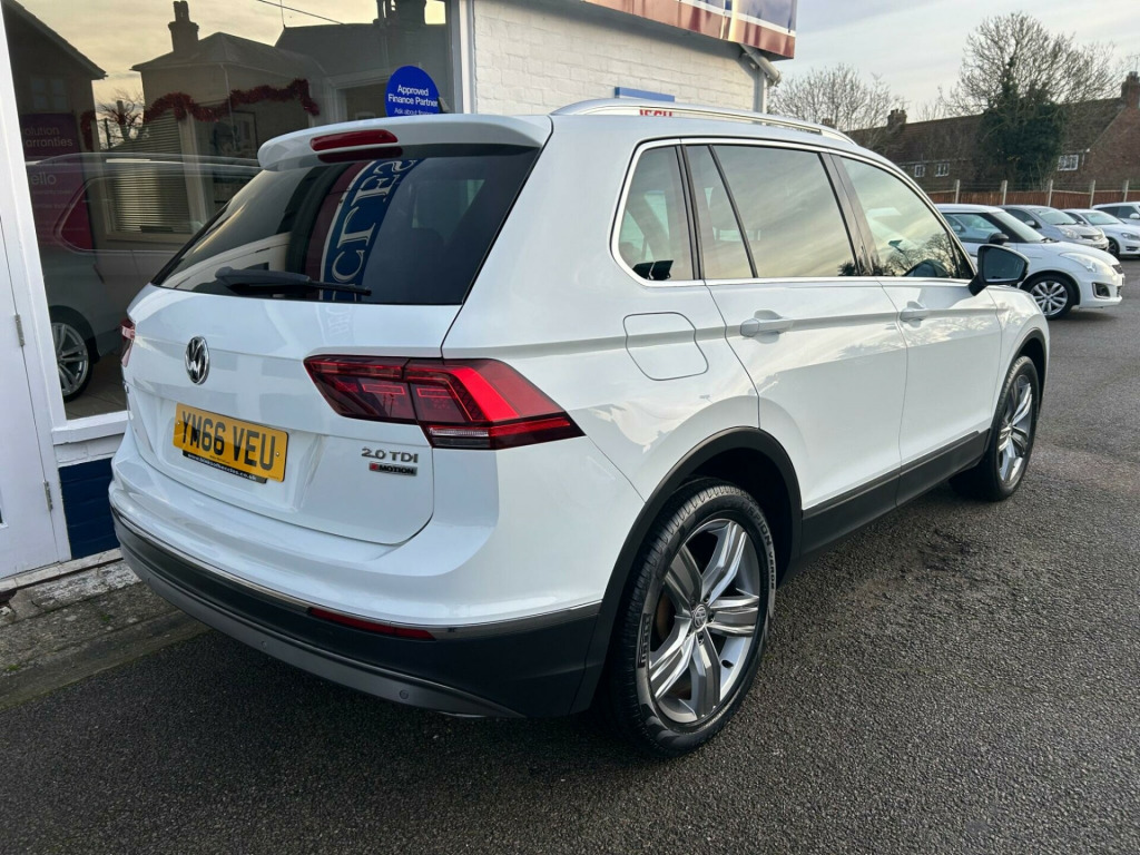 SHOWROOM OPENING 29-30th DEC 9.00AM-4.00PM+This 2017 Volkswagen Tiguan TDI SEL is a standout choice, boasting an exceptionally low mileage of just 55,000 miles for its age, coupled with a full service history and only two previous owners. This Euro 6 compliant, four wheel drive model features a robust 2.0 litre diesel engine, offering a substantial towing weight of 2200 kg. You can drive with confidence knowing it comes with a 6 month warranty and a 12 month MOT provided on purchase, and its vehicle history check is clear. Inside, experience the convenience of Driver Profile Selection with Eco, Normal, and Sport modes, alongside a rotary switch for Onroad, Offroad, Snow, and Offroad Individual driving modes. Enjoy the comfort of heated front seats and the expansive feel of a panoramic sunroof.This Tiguan SEL also offers impressive fuel economy, achieving up to 52 mpg, which is excellent for its class and indicates it is more economical than many similar vehicles. Its adaptive cruise control, complete with front parking sensors, makes journeys more relaxed. The large boot space provides ample room for all your needs, further enhancing its practicality. Furthermore, this model falls into a low insurance group, suggesting it is more affordable to insure than many comparable cars, making it a sensible and well rounded option for everyday driving and adventures alike.RESERVE ONLINE TODAY + ULEZ COMPLIANT +0% DEPOSIT FINANCE AVAILABLE + PLEASE MAKE YOUR APPOINTMENT TO VIEW TODAY + Our family owned business was founded in 1992 and our aim is to offer a friendly and efficient service and to make our customer's buying experience as easy and enjoyable as possible. Our experienced staff will offer advice, if required, to help ensure our customers find the most suitable car to match their motoring needs. . Although every effort is made to ensure the accuracy of these details please contact the dealer to verify any particular details prior to making a purchase. + All our cars are HPi checked to offer our customers peace of mind .. 12V Power Outlet on the Rear Centre Console, 19in Alloy Wheels - Victoria, 2 LED Entrance-Warning Lights - Front, 3 Rear Head Restraints - All Lowerable, 3D Effect Cherry Red LED Rear Tail Lights, ABS with Brake Assist System - Anti-slip Regulation-ASR - Electronic Locking Differential-EDL - Engine Drag Torque Control-EDTC - Trailer Stabilisation and XDS, Active Bonnet, Active Info Display, Airbag for Driver and Front Passenger with Front Passenger Airbag Deactivation, Alarm with Interior Protection, Ambient Lighting, Armrest - Front Centre with Storage Compartment, Automatic Hazard Light Activation Under Heavy Braking, Automatic Headlamp Activation with Separate Daytime Running Lights - Leaving Home Feature and Manual Coming Home Feature, Bag Hooks in the Luggage Compartment, Bluetooth Phone Connectivity, Car-Net App Connect, Carpet Mats - Front and Rear, Central Locking System with Radio Remote Control and 2 Keys, Chrome Trimmed Radiator Grille - Top and Bottom, Chrome Trimmed Side Windows, Chrome Trims on lower Edge of Car - Front - Side and Rear, Climate Control, Cruise Control - Adaptive, Cup Holders - Front x2, Decorative Inserts in Dark Grey for Dashboard and Door Trim Panels and Piano Black for Centre, Discover Navigation Touch-Screen Navigation-Radio System with Car-Net Guide and Inform, Door Mirrors - Electrically Folding, Driver Profile Selection with Eco - Normal - Sport Modes, Driver and Front Passenger Knee Airbag, Dynamic Light Assist, Electric Windows - Front and Rear, Electronic Engine Immobiliser, Electronic Parking Brake with Auto Hold Function, Electronic Stability Control with Multiple Collision Brake - ESC - Including Anti-Lock Brake System, Ergo Active Front Seats with Electric 14-Way Adjustment with Drivers Massage, Exterior Mirror Housings and Door Handles in Body Colour, Fatigue Assist - Drowsiness Detection, First Aid Kit and Warning Triangle, Front Assist with Pedestrian Monitoring Detection and City Emergency Braking, Front Fog Lights with Static Cornering Function, Front Passenger Seat has Release Lever for Fold Down Function when Carrying Longer Loads, Front Side Airbag with Curtain Airbag, Front Storage Compartment with 12V Socket, Front Windshield Wipers with Intermittent Operation and Rain Sensor, Gearshift Knob in Leather, Glasses Storage Holder in Roof, Glove Compartment - Lockable - Illuminated and with Cooling Capability, Head Airbag System for Front and Rear Passengers Including Side Airbags, Heated Front Seats, Heated Front Washer Nozzles, Hill Hold Assist, ISOFIX Anchors for 2 Outer Rear Seats - Easily Accessible, Indicator Lights and Service Interval Display, Instrument Cluster with Electronic Speedometer and Odometer and Trip Odometer - Tachometer, Interior Light in Front Footwell, Interior Lighting - Front and Rear with Interior Delay and Dimming Function, Interior Mirror Dimmable, LED Headlights with Dynamic Light Assist, Lane Assist, License Plate with LED Illumination, Load Lashing Points x4 in Luggage Compartment, Load-through Capability in the Rear Seat Bench Including Centre Armrest, Loading Edge Protection in Plastic, Luggage Compartment Cover - Removable, Luggage Compartment Light, Manually Adjustable Lumbar Support, Map Pockets on the Backs of the Front Seats, Misfuel Prevention Device, Multifunction Colour Display, One Touch Indicator, Panoramic Sunroof, Parking Sensors - Front and Rear, Power Steering - Electromechanical, Pre-Crash Preventive Occupant Protection, Radio MIB Composition Media 8in Colour Touchscreen - 8 Loudspeakers with CD - SD Slot - AUX-IN Jack and DAB Radio, Reading Lights Front x2 and Rear x2 - LED, Rear Seat Bench Not Split - Backrest Split Folding 40-20-40, Remote Unlocking for Trunk Lid via Key, Roof Rails - Silver Anodised, Rotary Switch by Gear Stick with Option for Onroad - Offroad - Snow and Offroad Individual Driving Modes, Safety-Optimised Head Restraints - Front Longitudinally Adjustable and