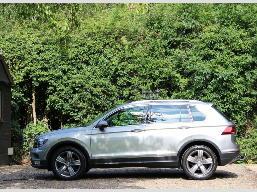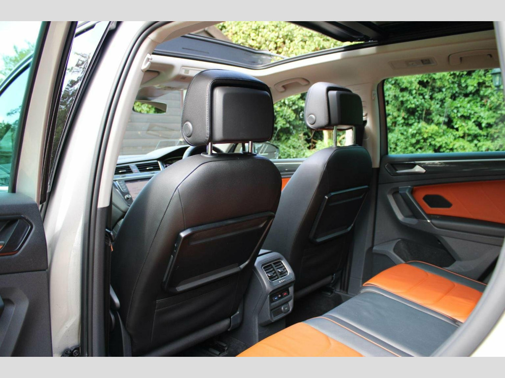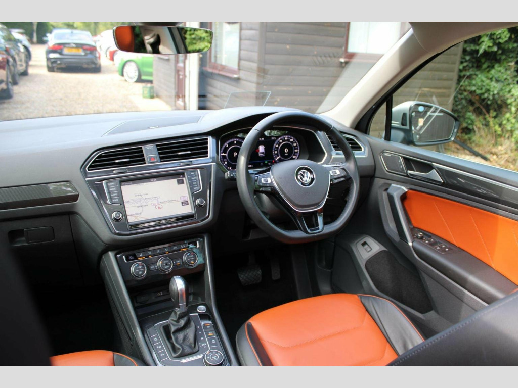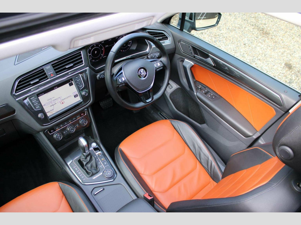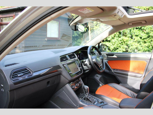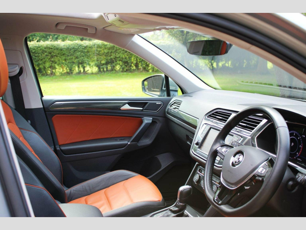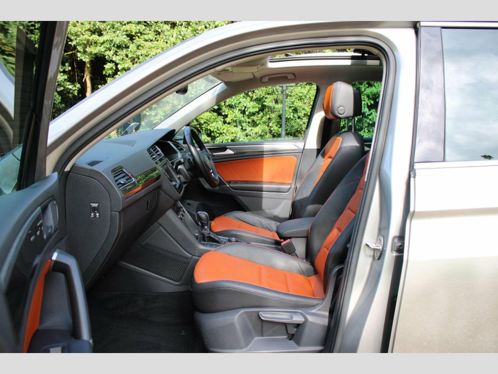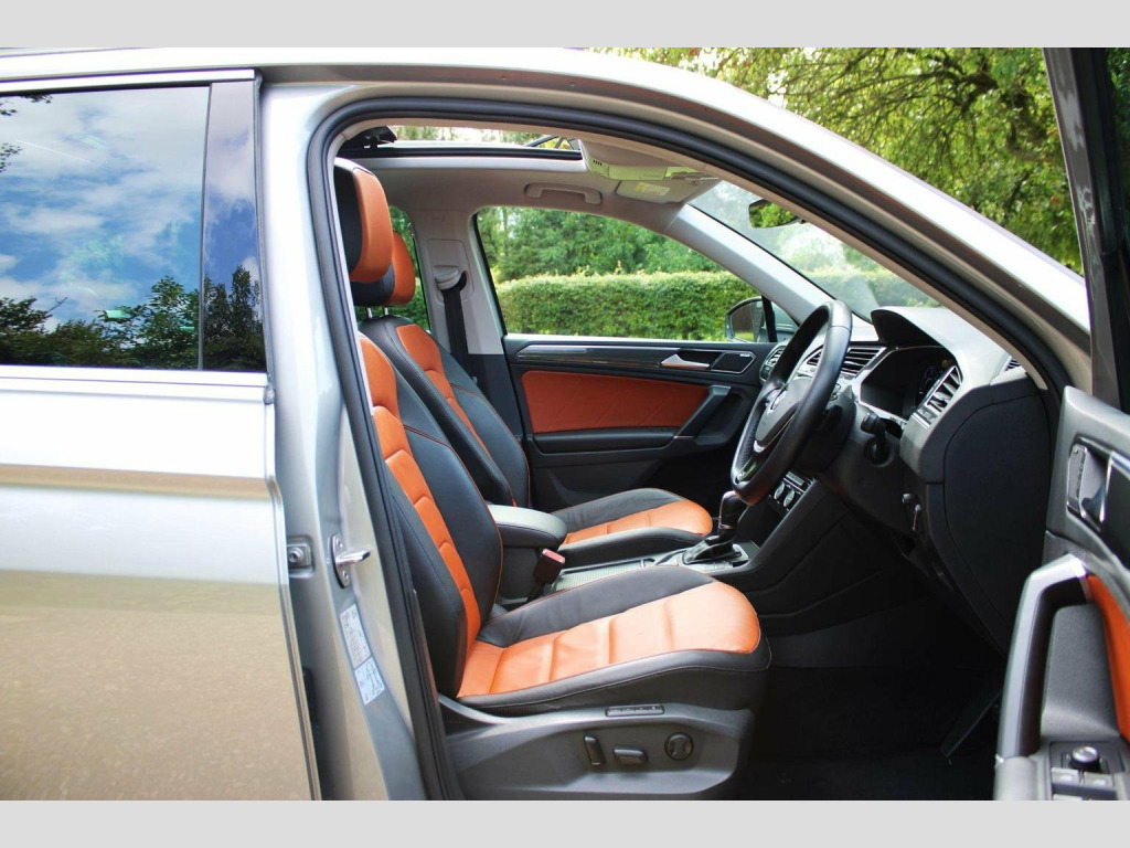 We are delighted to offer this well cared for Tiguan automatic in tungsten silver with saffrano vienna leather. Specification includes tilt and slide opening panoramic glass sunroof with retractable sunblind, technology package, discover pro touch screen sat nav, dab radio, dynaudio sound system, bluetooth, head up display, climate control, heated seats, electric drivers seat with lumbar adjustment and memory positions, heated multi function steering wheel, adaptive cruise control, auto hold, folding mirrors, heated windscreen washer jets, backrest release for left front seat, rear view camera, park assist, parking sensors front and rear, tow bar, power tailgate, space saver spare wheel and alloy wheels. Full service history including cambelt change 06/2025 and 2 x keys present. Call or visit our website for a finance quote (subject to status) No admin fees are charged. We specialise in privately owned high specification vehicles and endeavour to buy the best examples of the marques we sell. Old fashioned service with up to date product knowledge. 30 years of successful selling please check out our 5 Star reviews and buy with confidence.