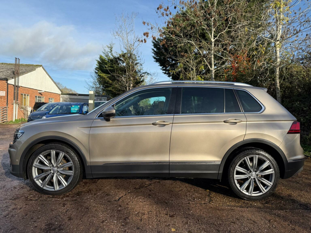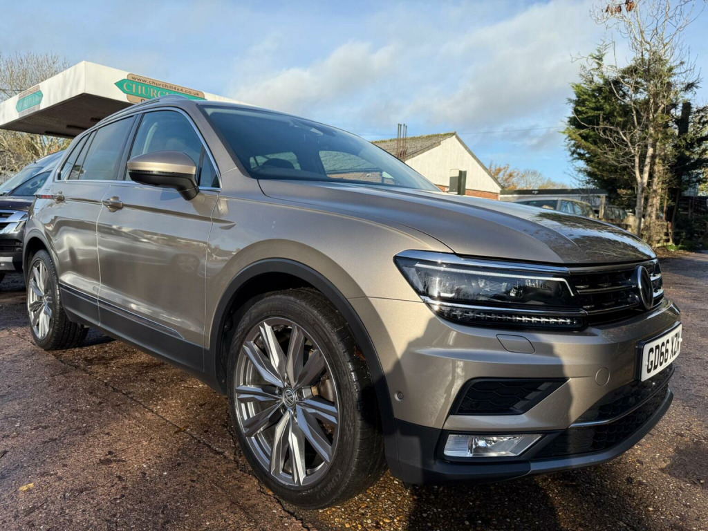 PANORAMIC GLASS SUNROOF + 20 WHEELS + 360 CAMERA + HEATED SEATS + VIRTUAL COCKPIT + POWER TAILGATE + FULL HISTORY including CAMBELT. This Volkswagen Tiguan TDI SEL from 2016 boasts a full service history, with its last service completed on 2025-10-10 at 94447 miles, offering excellent provenance. This Euro 6 compliant, four wheel drive model is powered by a 2.0 litre diesel engine and features the desirable SEL trim. Notable features include an electric tailgate for easy access to its large boot space, keyless entry for convenience, and the advanced Area View with Park Assist, which provides a 360 degree camera for effortless parking. It also comes equipped with stylish 20 inch Miramar alloy wheels. The Tiguan TDI SEL is designed to impress, offering a towing weight of 2500 kg, making it a capable companion for various needs. Its low insurance group rating indicates that running costs are kept competitive compared to similar vehicles. The inclusion of keyless entry with an electric boot lid further enhances the user experience, while the comprehensive service history and a 3 month warranty provide peace of mind for the next owner. HPi clear. 2 keys. Excellent set of Kumho tyres. Full service history 10 x services including new cambelt and waterpump with receipt in 2023/73k miles. Recent service + DSG gearbox oil change on 10/10/2025 at 94,47 miles. MOT 09/10/2026. 3 month RAC warranty included. Stunning looking example finished in Titanium Beige Metallic and with the 20 alloy wheels this really looks smart. PART EXCHANGE and FINANCE available. DELIVERY arranged please ask for a quote.