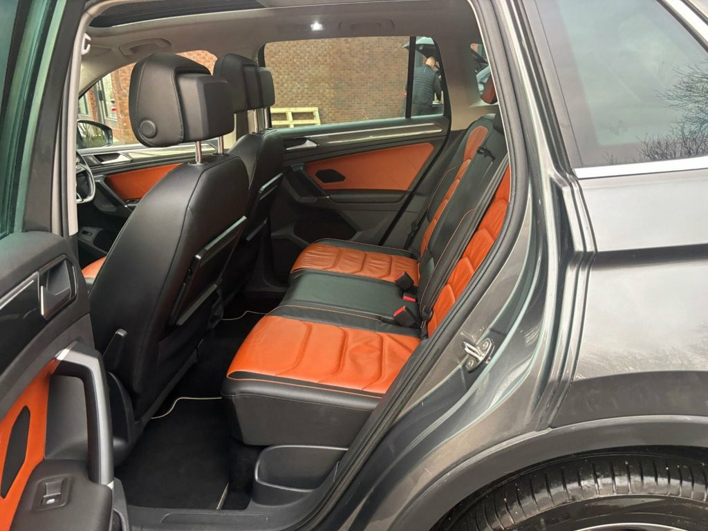 Discover this 2017 Volkswagen Tiguan TDI SEL, a well presented example ready for its next adventure. This model boasts a robust 2.0 litre diesel engine paired with a four wheel drive system, ensuring confident handling in various conditions. As a Euro 6 compliant vehicle, it meets modern emission standards. This Tiguan SEL offers a generous towing weight of 2500 kg, making it a practical choice for those needing to tow. You'll also appreciate the low insurance group, which can help keep running costs down. Furthermore, the large boot space provides ample room for luggage, shopping, or equipment, demonstrating how this vehicle is better equipped for everyday life and leisure than many others in its class. 12V Power Outlet on the Rear Centre Cons, 19in Alloy Wheels - Victoria, 2 LED Entrance-Warning Lights - Front, 3 Rear Head Restraints - All Lowerable, 3D Effect Cherry Red LED Rear Tail Light, ABS with Brake Assist System - Anti-slip, Active Bonnet, Active Info Display, Airbag for Driver and Front Passenger wi, Alarm with Interior Protection, Ambient Lighting, Armrest - Front Centre with Storage Comp, Automatic Hazard Light Activation Under , Automatic Headlamp Activation with Separ, Bag Hooks in the Luggage Compartment, Bluetooth Phone Connectivity, Body Coloured Bumpers and Door Handles, Body-Coloured Door Mirrors with Integrat, Car-Net App Connect, Carpet Mats - Front and Rear, Central Lo
