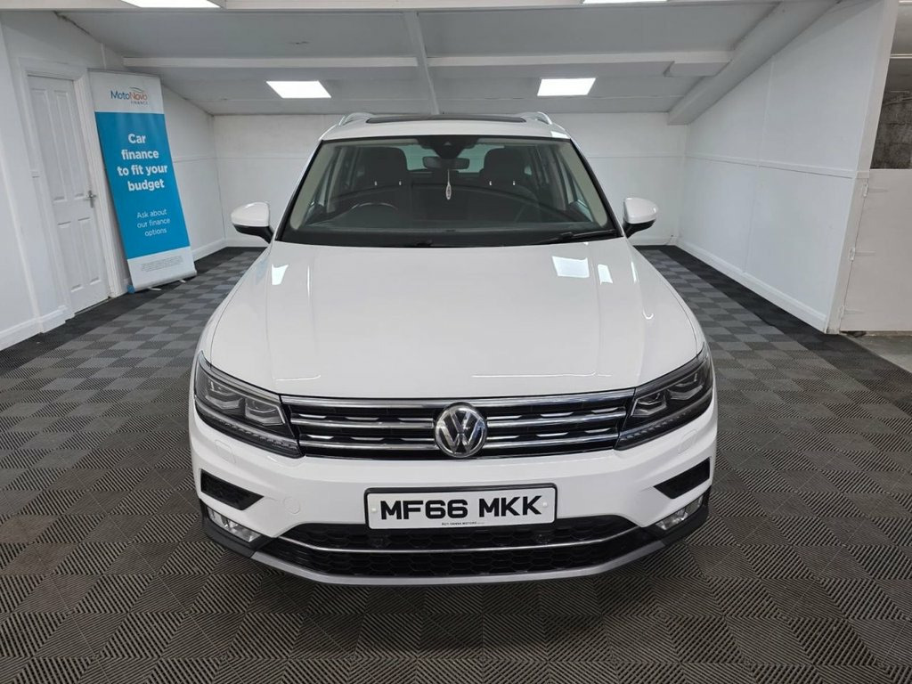 A truly beautiful and practical 2016 Volkswagen Tiguan SEL ready for viewing at Roy Hanna Motors! 2 Owners from new. 2 Keys. MOT to 30th August 2026. A great service history with records at - ~ 12,020 miles. ~ 18,115 miles. ~ 26,052 miles. ~ 35,165 miles. ~ 43,796 miles. ~ 52,486 miles. ~ 56,610 miles. ~ 60,196 miles. This car will be fully serviced and have a full pre-delivery check for its new owner. **Brand new 20" Alloy Wheels & Tyres are an optional extra** * We have a variety of wheels to chose from for each vehicle* Packed full of factory extras like - ~ Bluetooth Telephone preparation. ~ Distance control assist. ~ Lane assist. ~ Front assist, radar sensor controlled distance monitor. ~ Car-Net App-Connect. ~ Cornering front fog lights. ~ Fatigue detection system. ~ Speed sensitive power steering. ~ Adaptive cruise control. ~ Isofix Preparation 2 Rear child seats. ~ Rear tinted windows. ~ Rear cupholder. ~ Lowered sports suspension ~ Climate and traction controls. ~ CD/DAB Radio Player. ~ Body Coloured Bumpers. ~ Electric windows. *We Have Many Different Finance HP & PCP Deals Available To Suit Your Budget, You Can Drive Away In Your New Car With £0 Deposit & Pay Nothing For 2 Full Months! *For A Personalised Quote Give Us A PM / Text / Call Or Propose Yourself For Finance On Our Website *All Usual Dealer Facilities Available. *Credit/Debit Cards Accepted. *Trade Ins Welcome. *Every Vehicle Comes With Warranty. *Every Vehicle Co 12V Power Outlet on the Rear Centre Cons, 19in Alloy Wheels - Victoria, 2 LED Entrance-Warning Lights - Front, 3 Rear Head Restraints - All Lowerable, 3D Effect Cherry Red LED Rear Tail Light, ABS with Brake Assist System - Anti-slip, Active Bonnet, Active Info Display, Airbag for Driver and Front Passenger wi, Alarm with Interior Protection, Ambient Lighting, Armrest - Front Centre with Storage Comp, Automatic Hazard Light Activation Under , Automatic Headlamp Activation with Separ, Bag Hooks in the Luggage Compartment, Bluetooth Phone Connectivity, Car-Net App Connect, Carpet Mats - Front and Rear, Central Locking System with Radio Remote, Chrome Trimmed Radiator Grille - Top and, Chrome T
