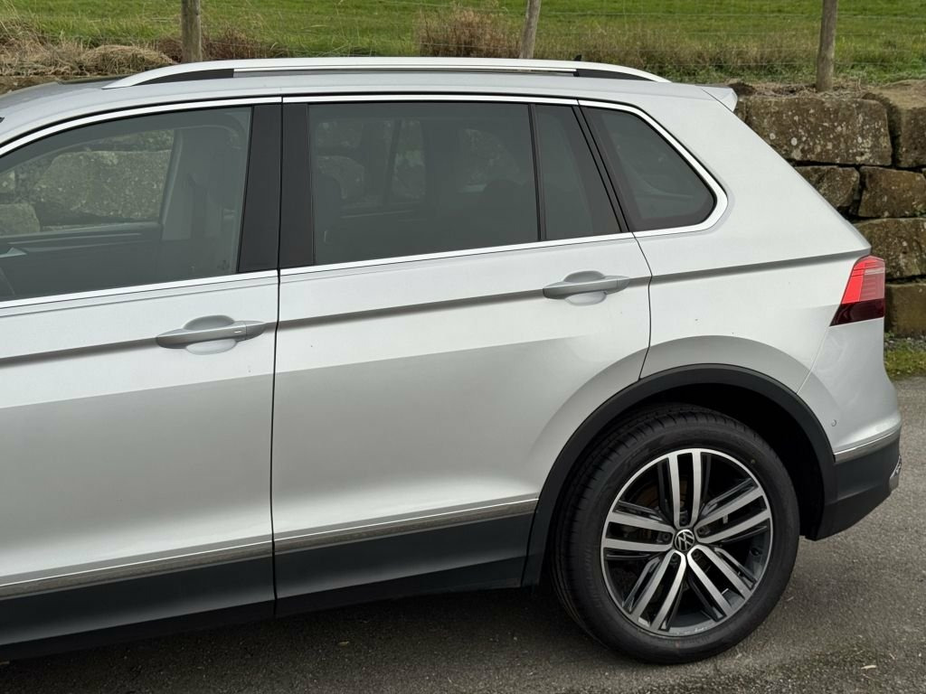 Discover this exceptional 2020 Volkswagen Tiguan TDI Elegance, boasting remarkably low mileage of just 16,250 miles for its age. This four wheel drive model is powered by an efficient 2.0 litre Euro 6 diesel engine, offering a substantial towing weight of 2500 kg. The Elegance trim level ensures a premium experience, complemented by features such as keyless entry and start, and a convenient full electric tailgate operation. This Tiguan is designed for comfort and practicality, featuring a winter pack with heated seats and a heated steering wheel, perfect for colder months. Enjoy the open air with the panoramic sunroof, and benefit from enhanced visibility and ease of parking with the rear view camera and automatic dusk sensing headlights. The generous boot space provides ample room for all your needs, and its low insurance group rating makes it an economical choice. Reflex Silver Metallic Titanium Black microfleece interior Tilting and sliding panoramic roof Silver roof railing 19 inch Auckland alloy wheels in dark graphite Heated front seats Keyless Access with push button start/stop Factory fitted rear privacy glass Auto dimming rear view mirror Power opening and closing tailgate Electrically folding and heated exterior mirrors 12V power connections in centre console and luggage compartment Adjustable front lumbar support Discover Media Navigation System Park Assist with park distance control LED Matrix headlamps with advance high beam control Rain sensing wipers Adaptive 1 x USB-C Connection, 12V Socket - Luggage Compartment, 12V Socket in Centre Console in Storage , 12V Socket on Rear of Front Centre Armre, 19in Alloy Wheels - Auckland - Dark Grap, Adaptive Cruise Control - ACC with Predi, Airbags, Alarm with Interior Protection with Deac, Aluminium Door Sill Protectors, Ambient Lighting Pack, App-Connect, Assistance Pack, Automatic Coming-Leaving Home Lighting F, Automatic Dimming Rear View Mirror, Automatic Hazard Lights Activation Under, Black Grained Lower Door Protectors with, Body Coloured Bumpers and Door Handles, Body-Coloured Door Mirrors with Integrat, Carpet Mats - Front and Rear, Chrome Pack, Chrome Plated Electric Mirror Adjustment, Chrome Plat