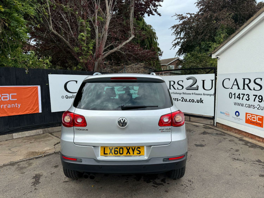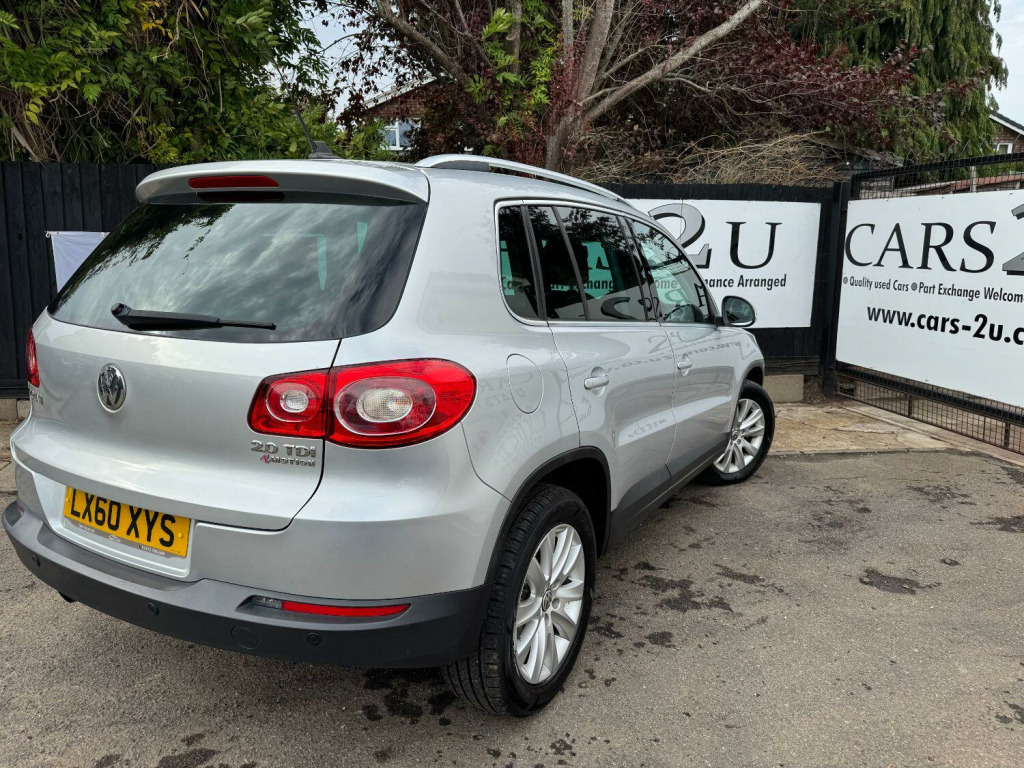 Cars2u - Quality Used Cars with a Personal TouchEstablished in 2012, Cars2u is a family-run business dedicated to providing quality used vehicles with a friendly ,no-pressure approach. Conveniently located on the outskirts of Ipswich, we have excellent transport links via the A12 and A14 and are just a 10 minute drive from Ipswich train station.At Cars2u , every vehicle we sell is HPI clear and undergoes a full inspection to ensure it meets our high standards .For added peace of mind ,all cars come with an RAC warranty. We also offer finance options ,part exchange and nationwide delivery, making it easier than ever to find your perfect car.Our focus is on customer satisfaction, providing a relaxed and professional service without the pressure of a hard sell. whether youre looking for your next car or simply exploring your options were here to help.Visit Cars2u today and experience a stress-free way to buy a car. , WE ARE VERY PLEASED TO OFFER THIS VERY GOOD LOOKING VERY CLEAN 2010 60 VOLKSWAGEN TIGUAN 2.0 TDI MATCH , GOOD SPEC ,SHE HAS COVERED A MEAR 83,000 MILES FROM NEW HAS A GOOD SERVICE RECORD ,SHE WILL BE SERVICED WHEN SOLD AS WELL AS A CURRENT MOT UNTILL 09/2026 AND WILL COME WITH A 3 MONTH RAC WARRANTY FOR HER NEW OWNERS COMPLETE PEACE OF MIND.
