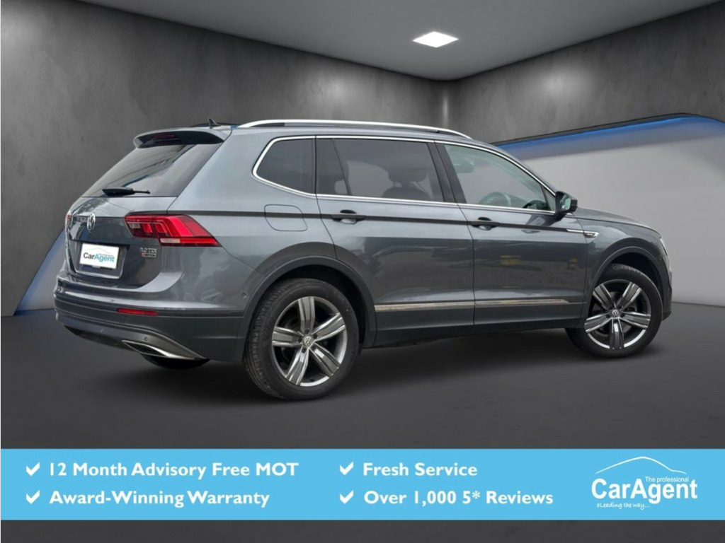 Discover this 2019 Volkswagen Tiguan Allspace TDI Match, a versatile and capable SUV. This particular model boasts a robust 2.0 litre diesel engine paired with a four wheel drive system, ensuring confident performance in various conditions. With seven seats, it offers ample space for families or groups, making it an ideal choice for those who need flexibility. As a Euro 6 compliant vehicle, it meets current emission standards. The Tiguan Allspace TDI Match stands out with its impressive 2500 kg towing weight, allowing you to transport trailers or caravans with ease. Furthermore, its low insurance group rating indicates that running costs are kept to a minimum, offering excellent value compared to similar vehicles. This combination of practicality, performance, and cost effectiveness makes this Tiguan Allspace a compelling option. We hand pick our cars from several trusted sources we have used for over 9 years as we know their cars are prepared to the highest standard. As well as these benefits our team will make sure you have the best experience during your purchase and the car will be prepared to the highest standards. We are a UK Award Winning customer car team with our own in house 3 month warranty and service Centre with options to extend your warranty for 12, 24 or 36 months. Our cars come with 12 months MOT no advisories, service and inspections, cambelt changes if required and are all HPI Clear. Feel free to make an appointment and drive our cars to see how you feel 12V Socket - Luggage Compartment, 12V Socket in Centre Console in Storage , 12V Socket on Rear of Front Centre Armre, 18 Degree Angle of Approach, 19in Alloy Wheels - Victoria, 2 Single Seats in the 3rd Row - Can Be F, 3 Single Seats in 2nd Row - Foldable, 4MOTION Active Control, ABS - Anti-Lock Braking System, Active Bonnet, Adaptive Cruise Control, Airbags, Alarm with Interior Protection with Deac, Assymetric Split Folding Rear Bench Seat, Automatic Coming-Leaving Home Lighting F, Automatic Dimming Interior Rear View Mir, Black Grained Lower Door Protectors with, Body Coloured Bumpers and Door Handles, Body-Coloured Door Mirrors with Integrat, Car-Net App Connect, Car-Net Guide and Inform