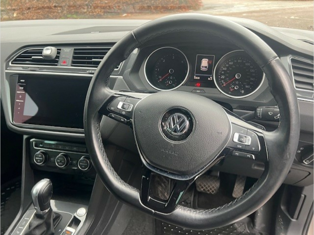 This 2019 Volkswagen Tiguan 2.0 TDI Match SUV 5dr Diesel DSG 4Motion Euro 6 (s/s) (150 ps) is a reliable and spacious SUV with only 53000 miles on the clock. With a diesel engine, it offers great fuel efficiency and is ULEZ compliant, making it suitable for city driving. It comfortably seats five people with plenty of room for storage and boasts five doors for easy access. With an MOT that expires on 29/09/2026, this car offers peace of mind for the years to come. Perfect for families or anyone in need of a practical and versatile vehicle, this Volkswagen Tiguan is the ideal choice for those looking for a dependable and stylish ride. r conditioning, bluetooth connection, colour satnav, keyless go, rain-sensing wipers, cruise control, lane departure warning, multi-function steering wheel, parking camera, power steering, trip computer, abs, child locks, isofix child seat anchor points, multiple airbags, service indicator, tyre pressure monitor, keyless entry, remote central locking, electric mirrors, electric tailgate, electric windows