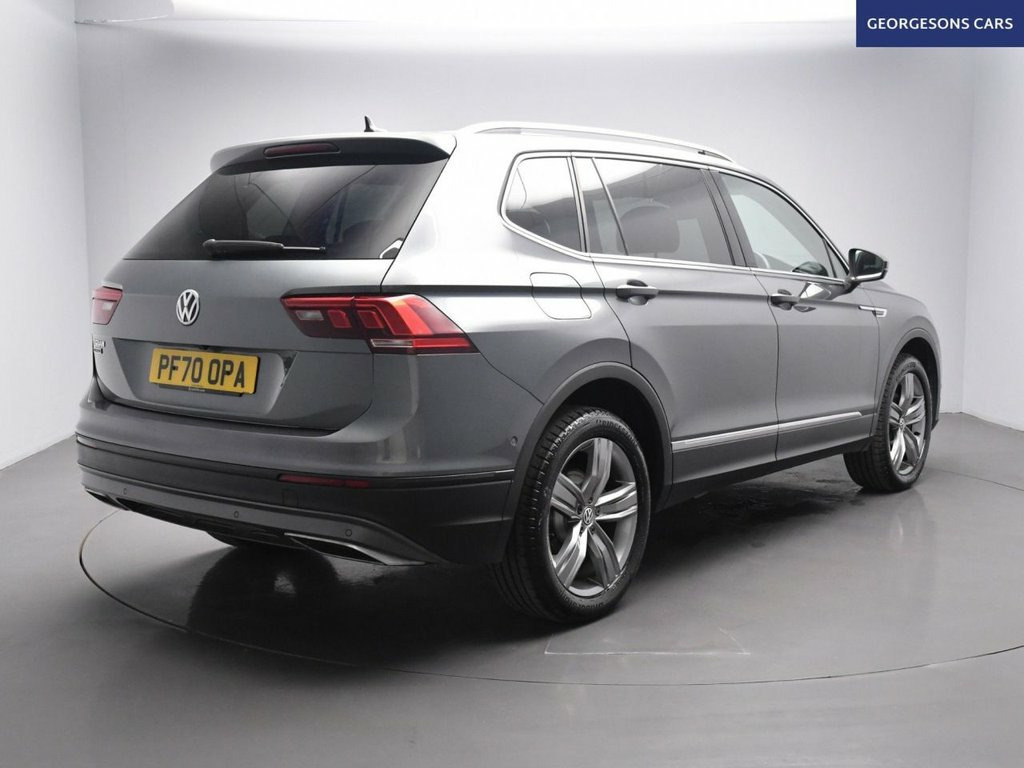 This one owner Volkswagen Tiguan Allspace 2.0 TDI Match SUV combines versatile 7-seat practicality with advanced driver aids, making it a standout in the Tiguan range. Powered by a 148bhp 2.0-litre TDI diesel engine with a smooth 7-speed DSG automatic, it delivers 0-62mph in 9.8 seconds and up to 47.9mpg, offering refined performance for family adventures and long motorway cruises. Navigate effortlessly with satellite navigation, a reverse camera, and parking sensors, while Apple CarPlay, Bluetooth, and DAB radio ensure seamless connectivity and entertainment. The comfortable cabin features dual-zone climate control for personalized comfort, complemented by adaptive cruise control, lane assist, hill assist, and selectable drive modes for a tailored driving experience. Start-stop technology and a push-button start enhance efficiency and ease. With its 230-litre boot expandable to 1775 litres and robust 2400kg towing capacity, this Match trim offers practicality and sophistication in spades (web:0, web:5, web:8). A dynamic 7-seat diesel SUV with a flawless pedigree, advanced technology, and versatile performance – this Volkswagen Tiguan Allspace 2.0 TDI Match is ready to transform your drive. Contact us today to test drive this exceptional SUV! 12V Socket - Luggage Compartment, 12V Socket in Centre Console in Storage , 12V Socket on Rear of Front Centre Armre, 18 Degree Angle of Approach, 19in Alloy Wheels - Victoria, 2 Single Seats in the 3rd Row - Can Be F, 3 Single Seats in 2nd Row - Foldable, ABS - Anti-Lock Braking System, Active Bonnet, Adaptive Cruise Control, Airbags, Alarm with Interior Protection with Deac, Assymetric Split Folding Rear Bench Seat, Automatic Coming-Leaving Home Lighting F, Automatic Dimming Interior Rear View Mir, Black Grained Lower Door Protectors with, Body Coloured Bumpers and Door Handles, Body-Coloured Door Mirrors with Integrat, Car-Net App Connect, Car-Net Guide and Inform - 3 Year Subscr, Carpet