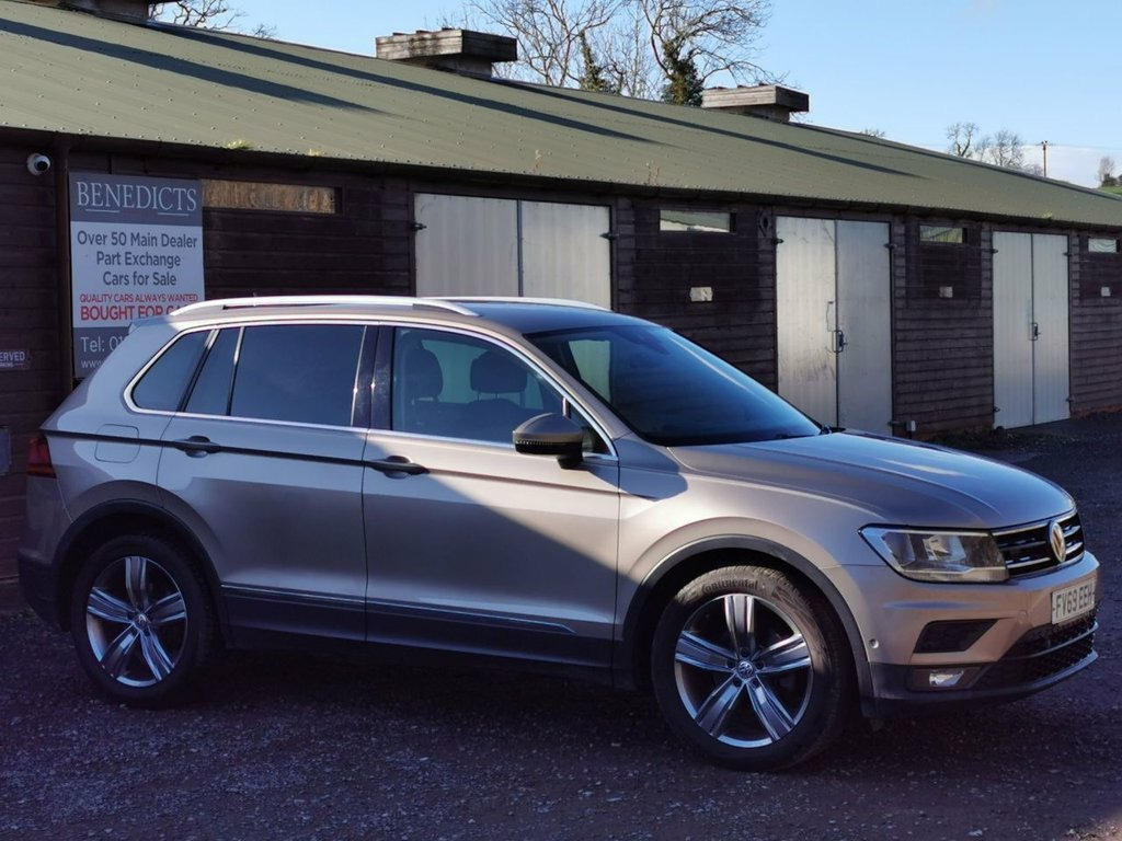 Presented in stylish Titanium Beige Metallic, this 2019 Volkswagen Tiguan Match offers the perfect blend of premium quality, practical space, and efficient diesel performance. Having covered just 65,700 miles with only two previous owners, it presents a fantastic opportunity to own this popular SUV. The Tiguan benefits from a well-maintained history, with four recorded services, the most recent being carried out in February 2026 at 65,935 miles. For complete peace of mind, it also comes with a long MOT, valid until February 2027, and is fully ULEZ and CAZ compliant, ensuring no extra charges in clean air zones. In sought-after Match specification, it is generously equipped with 19" alloy wheels, front and rear parking sensors, and a reversing camera to make parking simple. Inside, you'll find a touchscreen infotainment system with satellite navigation, DAB radio, and Bluetooth, all controlled from the multi-function steering wheel. Comfort is assured with automatic dual-zone climate control, cruise control, and automatic headlights, making every journey a pleasure. We are ready to get you on the road today, supplying the car with two sets of keys. To enhance your purchase, we offer competitive finance with rates from just 8.9% APR. Protect your investment with an RAC extended warranty; a 12-month policy is £599, or choose a 24-month policy for £899, which includes 12 months of complimentary breakdown cover. We can also arrange an Autoglym Lifeshine tr 12V Socket - Luggage Compartment, 12V Socket in Centre Console in Storage , 12V Socket on Rear of Front Centre Armre, 18 Degree Angle of Approach, 19in Alloy Wheels - Victoria, ABS - Anti-Lock Braking System, Active Bonnet, Adaptive Cruise Control, Airbags, Alarm with Interior Protection with Deac, Automatic Coming-Leaving Home Lighting F, Automatic Dimming Rear View Mirror, Automatic Hazard Lights Activation Under, Black Grained Lower Door Protectors with, Body Coloured Bumpers and Door Handles, Body-Coloured Door Mirrors with Integrat, Car-Net App Connect, Car-Net Guide and Inform (3 Year Subscri, Carpet Mats - Front and Rear, Chrome Side Window Surrounds, Chrome Trim on Radiator Grille -