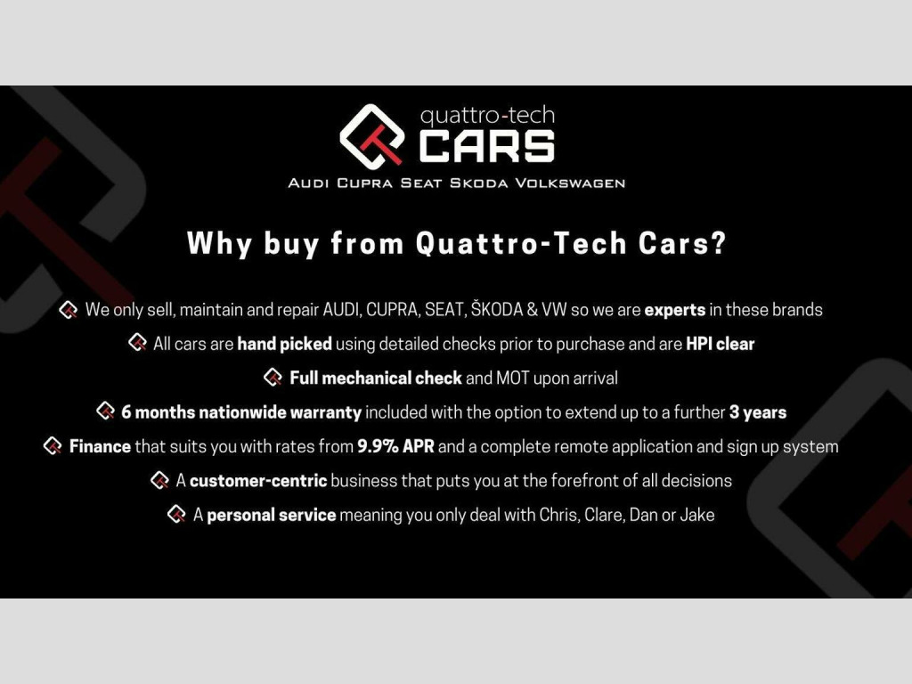 We have just bought this great looking Tiguan directly from the previous owner, registration MJ67 DGO. This is the 2.0 TDI 4Motion 150ps with 7-Speed DSG finished in metallic Deep Black with the rare optional full black leather. Specification and options;, >LED lights, >Adaptive Cruise control, >Panoramic sunroof, >Folding door mirrors, >Apple car play/Android auto, >Front and rear parking sensors, >Electric drivers seat with memory function, >Heated front seats, Plus more!, We have the following service history;, 1st service 18/10/2019 at 18,603 miles at VW, 2nd service 05/01/2022 at 33,415 miles at VW, 3rd service 29/06/2023 at 48,818 miles at VW inc cambelt and water pump replaced, 4th service 01/12/2023 at 54,464 miles inc DSG gearbox oil service, 5th service 25/10/2024 at 62,936 miles - major service, 26/03/2025 at 67,971 miles - gearbox oil change, 6th service 17/06/2025 at 72,504 miles, 7th service 21/10/2025 at 77,378 miles, We have carried out a Haldex 4wd oil service, sunroof service, brake fluid change and replaced pollen filter during preparation. , Please do call for more information and to discuss this car in more detail, do also make sure you watch our detailed walk-around video! We offer competitive finance options with APRs starting from 9.9% over 2-5 years, and can provide any quotations required. All of this can also be done online. We take any make in part exchange - while we only retail VAG product we will still seek the best value we can for your car. If it is easier you can text or WhatsApp on 07564 053855 or go to our website www.qtcars.co.uk and use the WhatsApp icon. We ensure the car receives a structured mechanical check, 12 months MOT upon arrival and 6 months warranty which can be used at any VAT registered garage nationally.