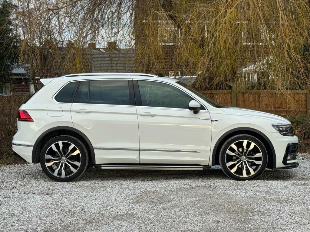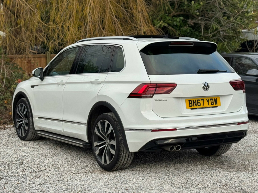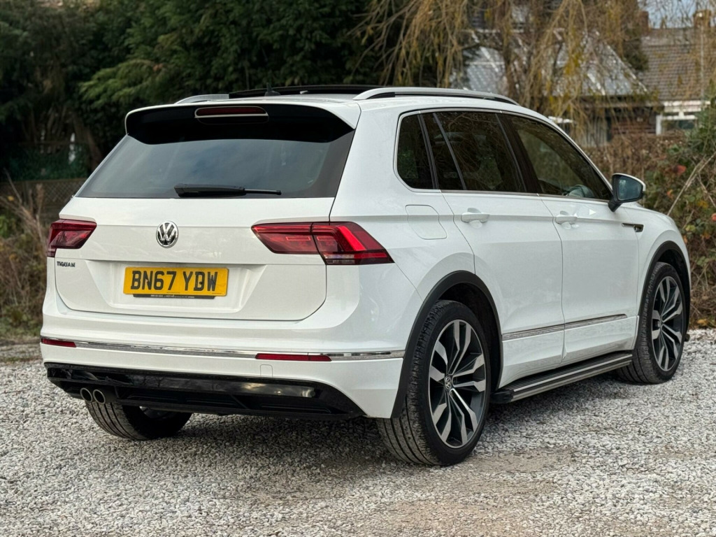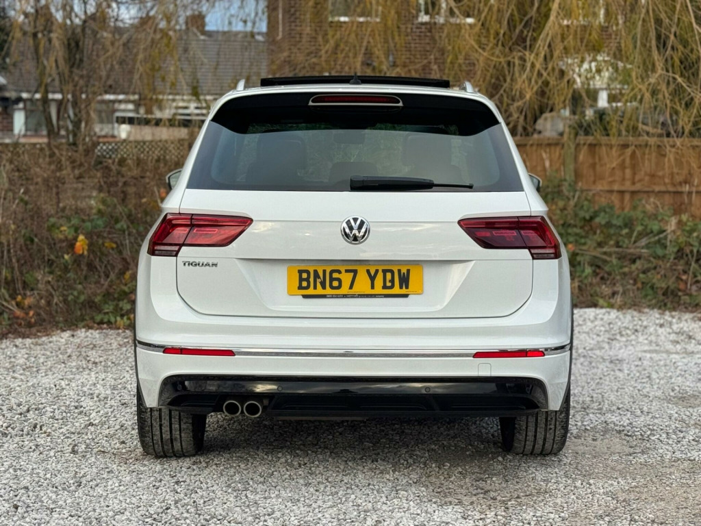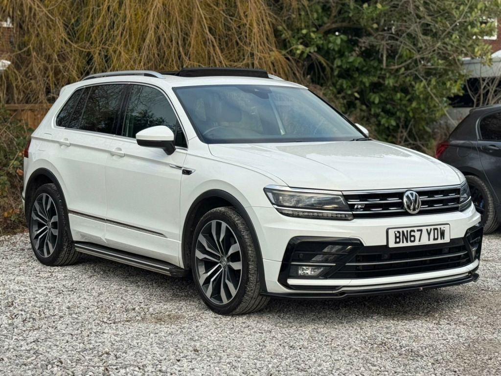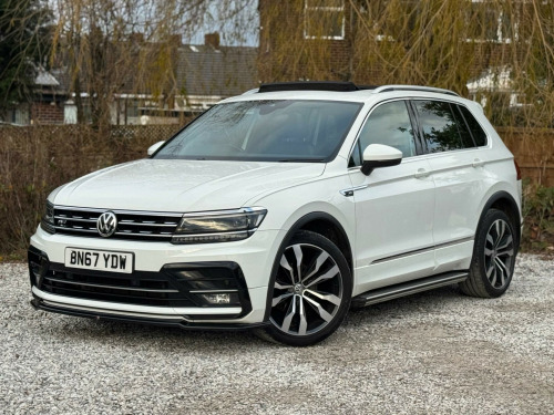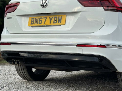 2 FORMER KEEPERSSERVICE HISTORY - FULL SERVICE HISTORY - 7 SERVICES - 3 MAIN DEALER SERVICES - SERVICE INTERVALS 18K, 34K, 52K, 65K, 74K, 91K, 102K - MOST RECENT SERVICE DONE 102,758 - WATER PUMP DONE 74,393LOGBOOKBN67YDWFeatures:Sat navPanoramic roofHeated seatsThis 2017 Volkswagen Tiguan TDI R-Line offers an exceptional blend of style and practicality, boasting a Euro 6 compliant 2.0 litre diesel engine. As a TDI R-Line model, it comes with the sporty R-Line trim, enhancing its already impressive presence. Inside, you'll find a wealth of features designed for comfort and convenience, including a panoramic sunroof that opens up the cabin, and a 3Zone electronic climate control system for personalised comfort. The Composition Media System with Bluetooth connectivity ensures you stay entertained and connected on every journey.This Tiguan stands out with its impressive fuel economy, achieving a highlight of 59 miles per gallon, which indicates it is more economical than many similar vehicles. Furthermore, its low CO2 emissions highlight its environmental consideration, and it sits in a low insurance group, suggesting lower running costs compared to other cars. The generous boot space is another key advantage, offering ample room for luggage or shopping, making it a highly practical choice for families and individuals alike. v socket - luggage compartment, 12v socket in centre console in storage area, 12v socket on rear of front centre armrest, 18 degree angle of approach, 20in alloy wheels - suzuka, abs - anti-lock braking system, active bonnet, active info display, adaptive cruise control, airbags, alarm with interior protection with deactivation via infotainment system, aluminium-look decorative inserts in dash and door panels, ambient lighting, automatic coming-leaving home lighting function, automatic dimming rear view mirror, automatic hazard light activation under heavy braking, black rooflining, body coloured bumpers and door handles, body coloured rear spoiler, body-coloured door mirrors with integrated indicators, car-net app connect, car-net guide and inform (3 year subscription from new), carpet mats - front and rear, chrome side window surrounds, chrome trim on radiator grille - upper and lower, chrome trimmed front air intake strip, climate control - 3zone electronic air conditioning with automatic air recirculation, coasting function, composition media system, cup holders - front x2, discover navigation touch-screen navigation-radio system with car-net guide and inform, driver alert system, drivers and passengers safety optimised head restraints, dusk sensor - automatic driving lights, dynamic light assist, esc - electronic stability control, electric windows - front and rear, electrically foldable door mirrors, electronic engine immobiliser, electronic parking brake with auto hold function, folding table on back of front seats, front assist with pedestrian monitoring detection and city emergency braking, front centre armrest with storage compartment - longitudinal and height adjustable and two rear air vents, front fog lights with static cornering function, front footwell illumination, front passengers seat folding backrest, front seat back storage pockets, front seats with r-line logo on rear seat backrest, glovebox - cooled, heated front seats, heated rear window, heated windscreen washer jets, height and reach adjustable steering wheel, height-adjustable front three-point seat belts with tensioners, high level 3rd brake light, instrument lighting - white adjustable panel illumination, interior light delay, isofix child seat preparation - easy-fit - for 2 outer rear seats, led headlights with dynamic light assist, led rear lights, led rear number plate lights, lane assist, load lashing points x4 in luggage compartment, load through provisions with rear centre armrest and 2 cup holders, luggage compartment cover - removable, luggage compartment light, misfuel prevention device, multifunction computer, panoramic sunroof, parking sensors - front and rear, pedals - stainless steel, piano black front air intake and rear diffuser, power assisted steering - speed sensitive, pre-crash preventive occupant protection, progressive steering, r-line styling pack, rain sensor, reading lights - front and rear x2 incorporating led technology, rear tinted glass - b pillar backwards - approx 65 percent tinted, rear wash wipe with intermittent wipe, remote central locking with 2 remote folding keys, remote tailgate unlocking via key fob, rigid safety cell with front and rear crumple zones, roof rails - silver anodised, silver front underbody protection and rear diffuser, sliding rear bench seat, spare wheel - space saver steel, split folding rear seat backrests 40-20-40, steering wheel - multifunction - leather trimmed, storage compartment in drivers and front passenger door for 1.5 litre bottle, storage compartment in rear doors, storage compartment in roof console for sunglasses, storage compartment with soft touch opening cover - dashboard, storage compartments in luggage area - left and right, suspension - sports - lowered by approx 15mm, three rear 3-point seat belts, three rear head restraints, two-tone horn, tyre pressure loss indicator, unique r-line badging, unique r-line door sill protectors, vanity mirrors - illuminated, variable boot floor, warning lights on sound, warning sound and light for doors and tailgate if open, warning sound and light for unfastened seat belts - front, warning triangle, windscreen wipers with intermittent wipe and 4 position delay, winter pack, xds electronic differential lock for improved traction and handling
