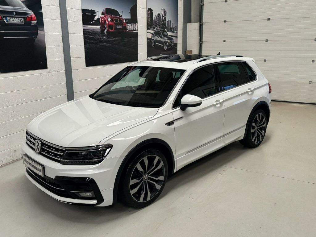 SP Cars are thrilled to offer this 2018/68 Volkswagen Tiguan 2.0 TDI R-Line SUV 5dr Manual (150 ps) Presented in Pure White with a great specification. EURO 6 And ULEZ Compliant. Supported with Vw service history and receipts at 7k, 21k, 31k and 44k then independent. Last serviced on 2nd Feb 2026 at 99k. Hpi Clear. MOT Until 15th October 2026. All part exchanges considered. Please check out our 5* reviews and a full walkaround video on our website www.spcars.net. We are FCA regulated and can arrange competitive finance packages to suit your needs. Please contact us directly for any further information or to reserve any of our vehicles. We have the V5, complete handbook pack, 2 keys, locking wheel nut, tool kit, service receipts and a space saver spare wheel. Viewing is by appointment only please. Please ring before travelling to avoid disappointment. The Great Spec Includes, Glass Panoramic Roof With Electric Sunblind, Discover Navigation Touch-Screen Navigation-Radio System with Car-Net Guide and Inform, Lane Assist, Rear View Camera, Winter Pack, Heated Front Seats, Apple Carplay/Android Audio, DAB Radio, Electrically Foldable Door Mirrors, 20in Alloy Wheels - Suzuka, Adaptive Cruise Control, Parking Sensors - Front and Rear, Glovebox - Cooled, R-Line Styling Pack, Sliding Rear Bench Seat, Ambient Lighting, Climate Control - 3Zone Electronic Air Conditioning with Automatic Air Recirculation, Car-Net App Connect, Folding Table on Back of Front Seats, Automatic Coming-Leaving Home Lighting Function, ABS - Anti-Lock Braking System, Automatic Dimming Rear View Mirror, Cup Holders - Front x2, Driver Alert System, 12V Socket - Luggage Compartment, Dynamic Light Assist, ESC - Electronic Stability Control, Front Fog Lights with Static Cornering Function, Front Passengers Seat Folding Backrest, Suspension - Sports - Lowered by Approx 15mm, Heated Windscreen Washer Jets, Isofix Child Seat Preparation - Easy-Fit - For 2 Outer Rear Seats, LED Headlights with Dynamic Light Assist, Load Through Provisions with Rear Centre Armrest and 2 Cup Holders