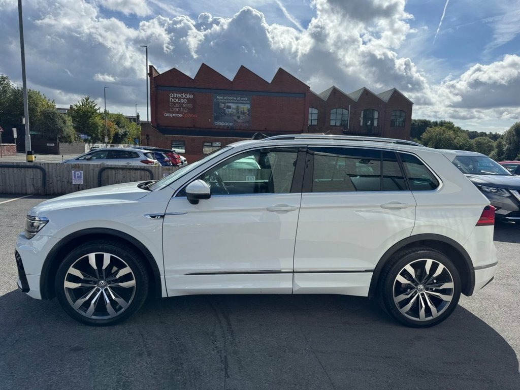 VW TIGUAN 2.0 TDI R-LINE AUTO 4 MOTION 4X4 in Pure white paintwork complimented by 20inch Suzuka alloy wheels. Only 2 owners from new (last owner for 4 years) and full VW service history. Serviced at VW at 5,559 miles, VW at 15,137, VW at 25,161, VW at 35,107 (with gearbox oil changed), VW at 45,370 and VW at 54,708. Top of the range spec level includes panoramic electric opening sunroof, sat nav, car play / android auto, multi-function steering with adaptive cruise, audio controls and paddle shift gears, front/rear parking sensors, power folding wing mirrors, heated front seats, automatic LED headlights, climate control with A/C, DAB radio, Bluetooth and much much more. Do not hesitate with this rare example, all viewings/test drives welcome. Call 0113 2636003 or visit leedsmotorcompany.co.uk. Pure White, Race Cloth - San Remo Microfibre - Dark , 12V Socket - Luggage Compartment, 12V Socket in Centre Console in Storage , 12V Socket on Rear of Front Centre Armre, 18 Degree Angle of Approach, 20in Alloy Wheels - Suzuka, 4MOTION Active Control, ABS - Anti-Lock Braking System, Active Bonnet, Active Info Display, Adaptive Cruise Control, Airbags, Alarm with Interior Protection with Deac, Aluminium-Look Decorative Inserts in Das, Ambient Lighting Pack, Automatic Coming-Leaving Home Lighting F, Automatic Dimming Rear View Mirror, Automatic Hazard Lights Activation Under, Black Rooflining, Body Coloured Bumpers and Door Handles, Body-Coloured Door Mirrors with Integrat, Body-Coloured Roof