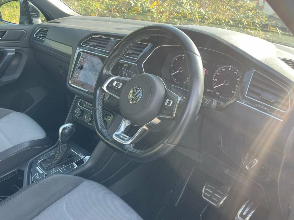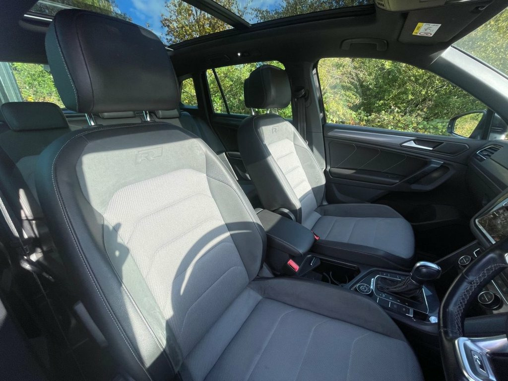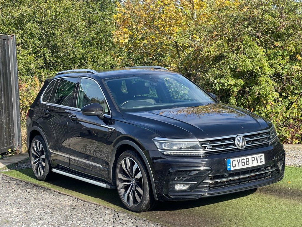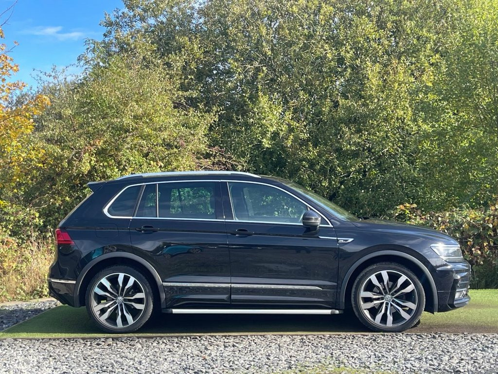 VOLKSWAGEN TIGUAN 2.0 TDI R-LINE SUV DSG 4 MOTION IN BLACK, GENUINE 63019 MILES WITH A COMPREHENSIVE SERVICE RECORD, 2 X KEYS, COLOUR CODED EXTERIOR, POWER FOLD MIRRORS, 20 " ALLOYS, LED DAYTIME RUNNING LIGHTS, XENON HEADLIGHTS, FRONT AND REAR PARK SENSORS, TWIN EXHAUST, ELECTRIC TAILGATE, ELECTRIC MIRRORS/WINDOWS, AUTO LIGHTS/WIPERS, FLAT BOTTOM MULTI FUNCTION STEERING WHEEL, ADAPTIVE CRUISE CONTROL, REMOTE CONTROL CENTRAL LOCKING, SATELLITE NAVIGATION , BLUE TOOTH, DAB DIGITAL RADIO,APPLE CAR PLAY, USB CONNECTIVITY, DUAL CLIMATE CONTROL WITH A/C, MULTIPLE DRIVE MODES INCLUDING SPORT/SNOW, SLIDING PANROOF, START/STOP, AUTO HOLD, REVERSE CAMERA, HALF ALCANTARA HEATED SEATS AND ISOFIX. 12V Socket - Luggage Compartment, 12V Socket in Centre Console in Storage , 12V Socket on Rear of Front Centre Armre, 18 Degree Angle of Approach, 20in Alloy Wheels - Suzuka, 4MOTION Active Control, ABS - Anti-Lock Braking System, Active Bonnet, Active Info Display, Adaptive Cruise Control, Airbags, Alarm with Interior Protection with Deac, Aluminium-Look Decorative Inserts in Das, Ambient Lighting Pack, Automatic Coming-Leaving Home Lighting F, Automatic Dimming Rear View Mirror, Automatic Hazard Lights Activation Under, Black Rooflining, Body Coloured Bumpers and Door Handles, Body-Coloured Door Mirrors with Integrat, Body-Coloured Roof Spoiler - Rear, Car-Net App Connect, Car-Net Guide an
