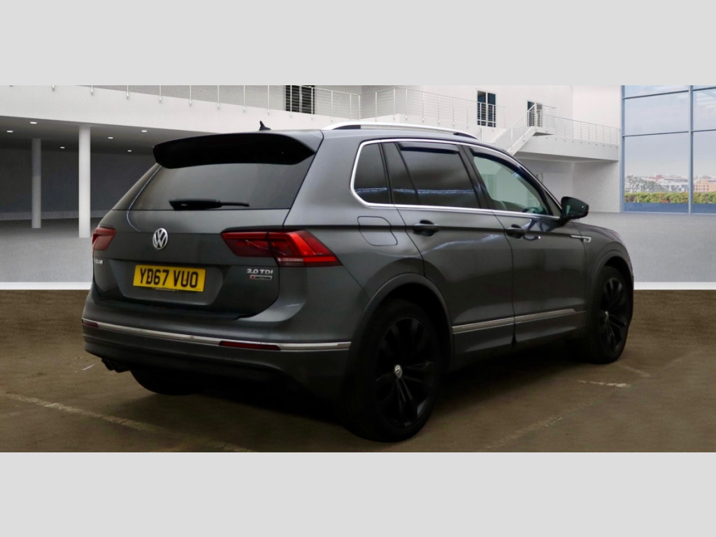 This 2017 Volkswagen Tiguan 2.0 TDI R-Line SUV with 81,000 miles on the clock is a reliable and stylish diesel vehicle that offers a smooth driving experience. With 5 seats and 5 doors, this SUV provides ample space for passengers and cargo. Its MOT expires on 30/06/2026, making it a great long-term investment. Not only is it ULEZ compliant, but it also boasts features such as parking sensors, Sat Nav, a glass panoramic roof, and race cloth seats in dark magnetic grey. The Indium Grey exterior adds to its sleek appearance, while the DSG 4Motion Euro 6 (s/s) engine with 150 ps delivers impressive performance. Whether you're cruising through the city or exploring the great outdoors, this Tiguan is ready to take you on your next adventure., v socket - luggage compartment, 12v socket in centre console in storage area, 12v socket on rear of front centre armrest, active info display, car-net app connect, car-net guide and inform (3 year subscription from new), composition media system, discover navigation touch-screen navigation-radio system with car-net guide and inform, 18 degree angle of approach, 20in alloy wheels - suzuka, body coloured bumpers and door handles, body coloured rear spoiler, body-coloured door mirrors with integrated indicators, chrome side window surrounds, chrome trim on radiator grille - upper and lower, chrome trimmed front air intake strip, electric windows - front and rear, electrically foldable door mirrors, front seats with r-line logo on rear seat backrest, heated rear window, heated windscreen washer jets, panoramic sunroof, piano black front air intake and rear diffuser, r-line styling pack, rear tinted glass - b pillar backwards - approx 65 percent tinted, roof rails - silver anodised, spare wheel - space saver steel, unique r-line badging, abs - anti-lock braking system, active bonnet, airbags, alarm with interior protection with deactivation via infotainment system, automatic hazard light activation under heavy braking, esc - electronic stability control, electronic engine immobiliser, electronic parking brake with auto hold function, height-adjustable front three-point seat belts with tensioners, isofix child seat preparation - easy-fit - for 2 outer rear seats, led rear number plate lights, misfuel prevention device, pre-crash preventive occupant protection, rear wash wipe with intermittent wipe, remote central locking with 2 remote folding keys, rigid safety cell with front and rear crumple zones, silver front underbody protection and rear diffuser, three rear 3-point seat belts, two-tone horn, warning sound and light for unfastened seat belts - front, warning triangle, xds electronic differential lock for improved traction and handling, adaptive cruise control, coasting function, driver alert system, driver profile selection - choice of three settings - eco - normal and sport modes, front assist with pedestrian monitoring detection and city emergency braking, lane assist, multifunction computer, parking sensors - front and rear, power assisted steering - speed sensitive, progressive steering, suspension - sports - lowered by approx 15mm, tyre pressure loss indicator, warning sound and light for doors and tailgate if open, aluminium-look decorative inserts in dash and door panels, ambient lighting, automatic dimming rear view mirror, black rooflining, carpet mats - front and rear, climate control - 3zone electronic air conditioning with automatic air recirculation, cup holders - front x2, drivers and passengers safety optimised head restraints, folding table on back of front seats, front centre armrest with storage compartment - longitudinal and height adjustable and two rear air vents, front footwell illumination, front passengers seat folding backrest, front seat back storage pockets, glovebox - cooled, heated front seats, height and reach adjustable steering wheel, instrument lighting - white adjustable panel illumination, interior light delay, load lashing points x4 in luggage compartment, load through provisions with rear centre armrest and 2 cup holders, luggage compartment cover - removable, luggage compartment light, pedals - stainless steel, rain sensor, reading lights - front and rear x2 incorporating led technology, remote tailgate unlocking via key fob, sliding rear bench seat, split folding rear seat backrests 40-20-40, steering wheel - multifunction - leather trimmed with paddle shift, storage compartment in drivers and front passenger door for 1.5 litre bottle, storage compartment in rear doors, storage compartment in roof console for sunglasses, storage compartment with soft touch opening cover - dashboard, storage compartments in luggage area - left and right, three rear head restraints, unique r-line door sill protectors, vanity mirrors - illuminated, variable boot floor, windscreen wipers with intermittent wipe and 4 position delay, winter pack, automatic coming-leaving home lighting function, dusk sensor - automatic driving lights, dynamic light assist, front fog lights with static cornering function, high level 3rd brake light, led headlights with dynamic light assist, led rear lights, warning lights on sound