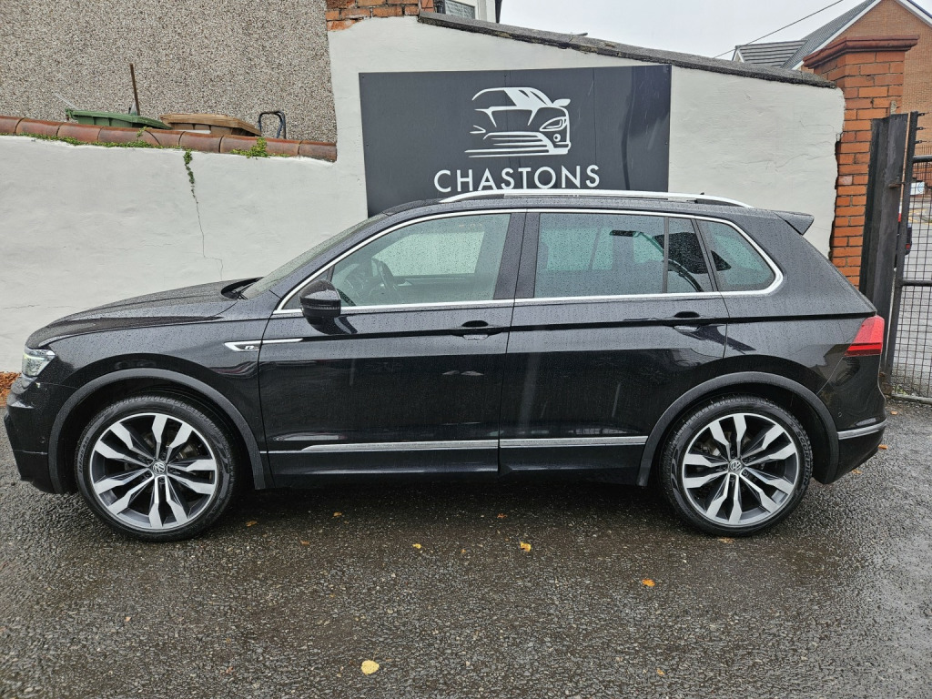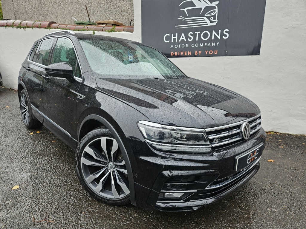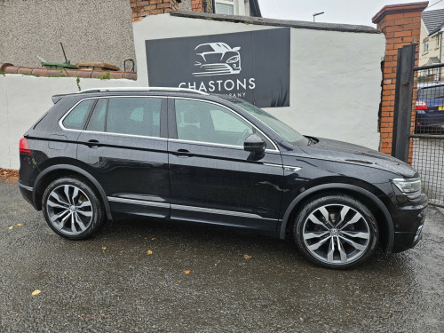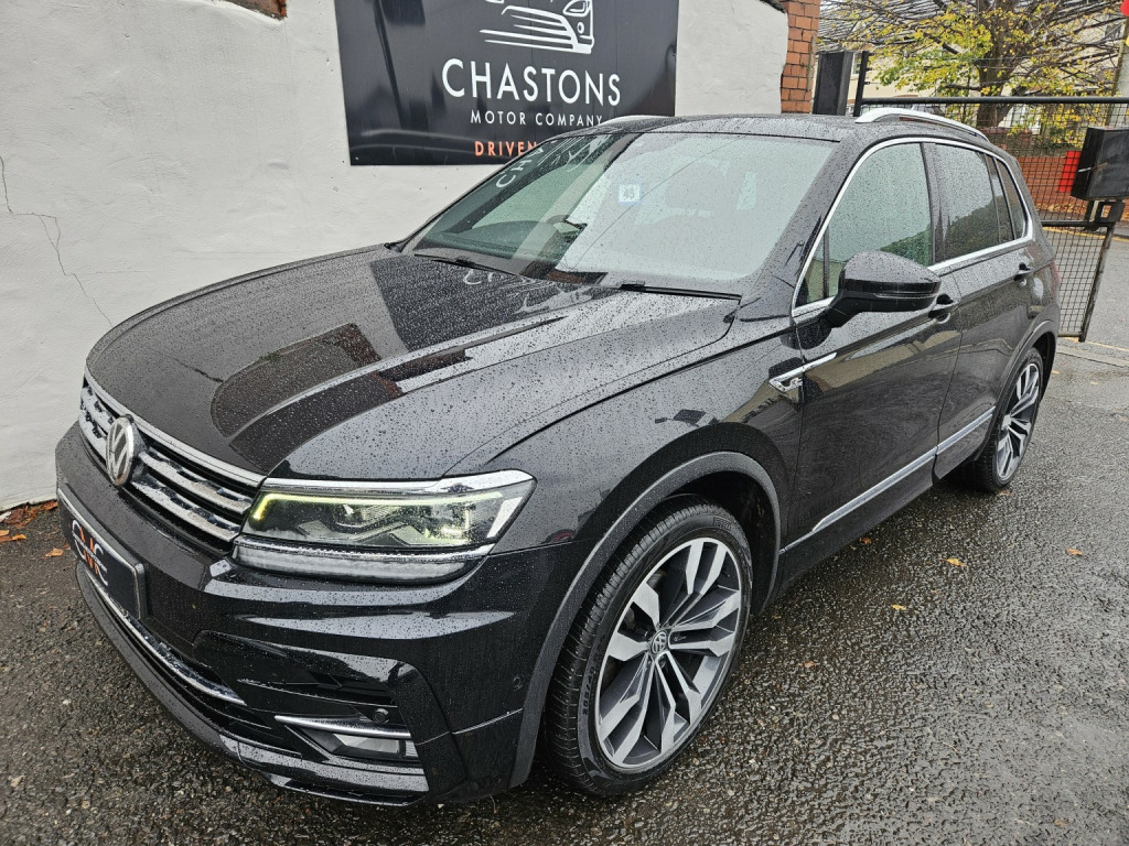 69 Plate Volkswagen Tiguan 2.0TDi R-Line DSG, Finished in Pearl Black Metallic, Comes with fantastic Factory Spec Including Body Coloured Bumpers, 20 Bi Colour Alloys, LED Lights, Tinted Windows, Roof Spoiler, Keyless Entry, Push Button Start, Half Leather/Alcantara Sports Seats, Heated Seats, Touch Screen Media System, Satellite Navigation, Panoramic Sunroof, Apple Carplay/Android Auto, Cruise Control, Adaptive Cruise, Lane Assist, Power Tailgate, A/C, Digital Climate Control, Driving Modes, Automatic Lights/Wipers, Electric Windows, Electric Folding Mirror, Bluetooth, Trip Computer, Lovely Well Cared for Example, Comes with Full Service History, Drives Superb, Excellent Performance and Fuel Economy,