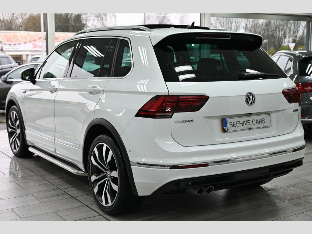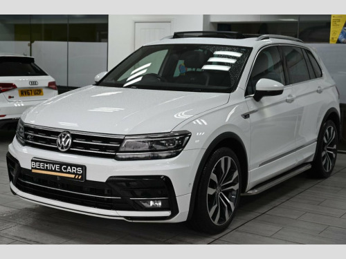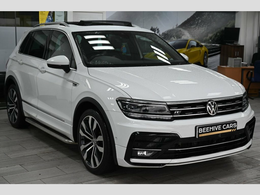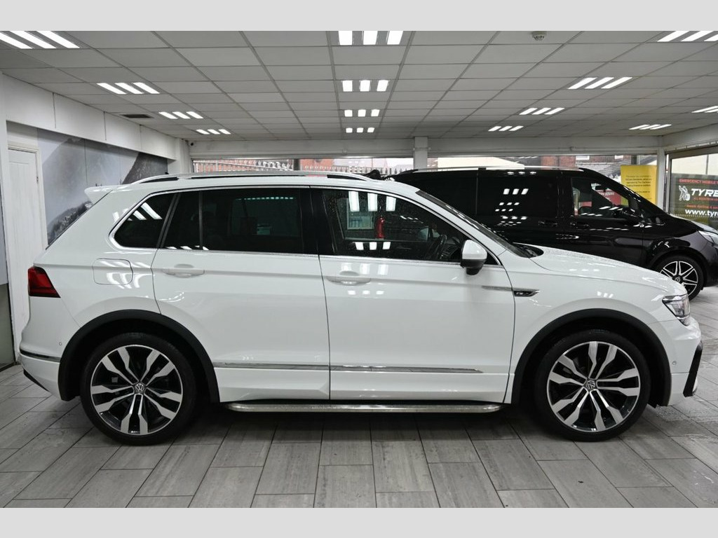 DRIVE AWAY TODAY OR HOME DELIVERY ANYWHERE IN MAINLAND UK FINANCE & PART EXCHANGE ARRANGED ONLINE **7 DAY MONEY BACK GUARANTEE** Lovely Volkswagen Tiguan 2.0 tdi r-line technology dsg 4motion suv in metallic white with full vw service history (just been serviced at VW feb 2026 ) also has a free next service left - reverse camera panoramic glass roof sat nav dab radio bluetooth media usb full r-line leather seats with armrest front and rear heated seats electric seats electric heated folding door mirrors front and rear parking aid sensors xenon lights flat bottom r-line steering wheel with f1 style paddelshifts eco normal sport individual driving modes side step bars electric push button tailgate alloys privacy 12V Socket - Luggage Compartment, 12V Socket in Centre Console in Storage , 12V Socket on Rear of Front Centre Armre, 18 Degree Angle of Approach, 20in Alloy Wheels - Suzuka, 4MOTION Active Control, ABS - Anti-Lock Braking System, Active Bonnet, Active Info Display, Adaptive Cruise Control, Airbags, Alarm with Interior Protection with Deac, Aluminium-Look Decorative Inserts in Das, Ambient Lighting Pack, Area View with Park Assist, Automatic Coming-Leaving Home Lighting F, Automatic Dimming Rear View Mirror, Automatic Hazard Lights Activation Under, Black Rooflining, Body Coloured Bumpers and Door Handles, Body-Coloured Door Mirrors with Integrat, Body-Coloured Roof Spoiler - Rear, Car-Net A