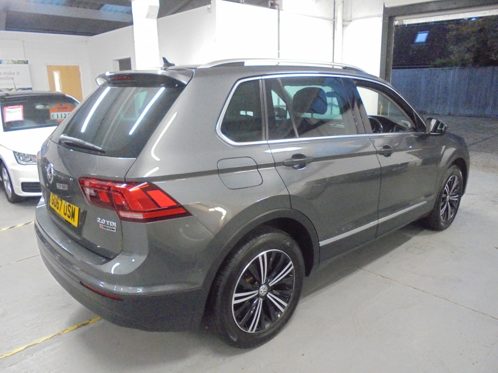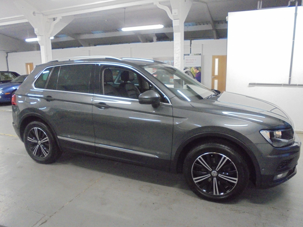 Just arrived and now on sale here at Leslie Cars Uckfield this ONE OWNER 2017 67 FOUR WHEEL DRIVE , Volkswagen Tiguan 2.0lt SE Tdi Diesel 6 Speed Manual. Finished in Metallic Grey With Black Heated Leather Seats. A Full Service History accompanies this car with documented services recorded at: 10,486 miles, 19,988 miles, 29,756 miles, 36,121 miles, 42,101 miles (including Cam-belt & Water Pump change), 51,308 miles, 59,913 miles and most recently at 69,134 miles. Features Inc: APPLE CAR PLAYU HEATED FRONT LEATHER SEATS ELECTRIC FOLDING MIRRORS PARK ASSIST FRONT & REAR PARKING SENSORS WITH REVERSE CAMERA CRUISE CONTROL SPACE SAVER SPARE WHEEL DRIVING MODES MEDIA SCREEN WITH DAB BLUETOOTH BLUETOOTH. All vehicles supplied by Leslie Cars come with a comprehensive parts and labour warranty which can be Upgraded & extended for up to 24 months. All our cars are supplied with a minimum of 6 months MOT and serviced if required, pre-delivery inspected, fully valeted and HPI checked. Full finance options available subject to eligibility. Please note all sales are subject to a £55 admin fee. Part exchange welcome. For more information, please call 01825 748 710. We are open 7 Days a week. If you are travelling over to see a particular vehicle, please call first to check availability and avoid disappointment.
