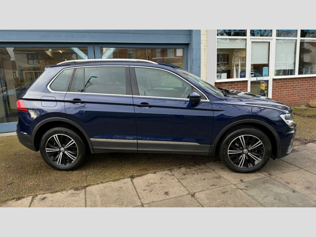 EXCELLENT CONDITION FOR AGE AND MILEAGE , JUST HAD A MAJOR SERVICE INCLUDING CAM-BELT AND WATER PUMP , ALSO GEAR BOX OIL CHANGE . SUPPLIED WITH 2 KEY'S NEW MOT AND WARRANTY . PART EX AND FINANCE WELLCOME . This 2018 Volkswagen Tiguan TDI SE Navigation presents a remarkable opportunity with its exceptionally low mileage of just 55,000 miles for its age. Powered by a robust 2.0 litre diesel engine and featuring a capable four wheel drive system, this Euro 6 compliant model is designed for both efficiency and performance. The SE Navigation trim level ensures you are well equipped, boasting the advanced Discover Navigation Pro system with a touch screen, DVD infotainment, integrated voice activation, and gesture control. Further enhancing your driving experience are Car Net Guide and Inform Plus, Car Net App Connect which includes Android Auto and Apple CarPlay, and a Tyre Pressure Monitoring System. For added convenience and safety, it also features Driver Profile Selection with Eco, Normal, and Sport modes, along with front and rear parking sensors that include parking assistance.The generous boot space offers ample room for all your needs, making this Tiguan a practical choice for families and adventurers alike. Its impressive 2500 kg towing weight capability further expands its versatility. The Tiguan also benefits from a low insurance group, which can help to keep your running costs down. These combined attributes, including its low mileage and comprehensive feature set, clearly distinguish this Volkswagen Tiguan from other vehicles in its class, offering a compelling package of technology, practicality, and value., scover navigation pro touch-screen navigation-dvd infotainment system with integrated voice activation - gesture control - car-net guide and inform plus and car-net app-connect, tyre pressure monitoring system, 12v socket - luggage compartment, 12v socket in centre console in storage area, 12v socket on rear of front centre armrest, 18 degree angle of approach, 18in alloy wheels - patagonia, abs - anti-lock braking system, active bonnet, adaptive cruise control, airbags, alarm with interior protection with deactivation via infotainment system, automatic coming-leaving home lighting function, automatic dimming rear view mirror, automatic hazard light activation under heavy braking, black grained lower door protectors with chrome insert, body coloured bumpers and door handles, body-coloured door mirrors with integrated indicators, car-net app connect, car-net guide and inform (3 year subscription from new), carpet mats - front and rear, chrome side window surrounds, chrome trim on radiator grille - upper and lower, chrome trimmed front air intake strip, climate control - 3zone electronic air conditioning with automatic air recirculation, coasting function, composition media system, cup holders - front x2, discover navigation touch-screen navigation-radio system with car-net guide and inform, driver alert system, driver profile selection - choice of three settings - eco - normal and sport modes, drivers and front passengers under seat drawer, drivers and passengers safety optimised head restraints, dusk sensor - automatic driving lights, esc - electronic stability control, electric windows - front and rear, electrically foldable door mirrors, electronic engine immobiliser, electronic parking brake with auto hold function, folding table on back of front seats, front assist with pedestrian monitoring detection and city emergency braking, front centre armrest with storage compartment - longitudinal and height adjustable and two rear air vents, front comfort seats with height and lumbar adjustment, front fog lights with static cornering function, front footwell illumination, front passengers seat folding backrest, front seat back storage pockets, glovebox - cooled, halogen clear headlights - range adjustable via infotainment system, heated rear window, height and reach adjustable steering wheel, height-adjustable front three-point seat belts with tensioners, high beam assist, high level 3rd brake light, instrument lighting - white adjustable panel illumination, interior light delay, isofix child seat preparation - easy-fit - for 2 outer rear seats, led rear number plate lights, lane assist, load lashing points x4 in luggage compartment, load through provisions with rear centre armrest and 2 cup holders, luggage compartment cover - removable, luggage compartment light, misfuel prevention device, multifunction colour display, multifunction computer, parking sensors - front and rear, power assisted steering - speed sensitive, pre-crash preventive occupant protection, rain sensor, reading lights - front x2, rear tinted glass - b pillar backwards - approx 65 percent tinted, rear wash wipe with intermittent wipe, remote central locking with 2 remote folding keys, remote tailgate unlocking via key fob, rigid safety cell with front and rear crumple zones, roof rails - silver anodised, sliding rear bench seat, spare wheel - space saver steel, split folding rear seat backrests 40-20-40, steering wheel - multifunction - leather trimmed with paddle shift, storage compartment in drivers and front passenger door for 1.5 litre bottle, storage compartment in rear doors, storage compartment in roof console for sunglasses, storage compartment with soft touch opening cover - dashboard, storage compartments in luggage area - left and right, three rear 3-point seat belts, three rear head restraints, titan silver decorative inserts in dash and door panels, two-tone horn, tyre pressure loss indicator, vanity mirrors - illuminated, variable boot floor, warning lights on sound, warning sound and light for doors and tailgate if open, warning sound and light for unfastened seat belts - front, warning triangle, windscreen wipers with intermittent wipe and 4 position delay, xds electronic differential lock for improved traction and handling