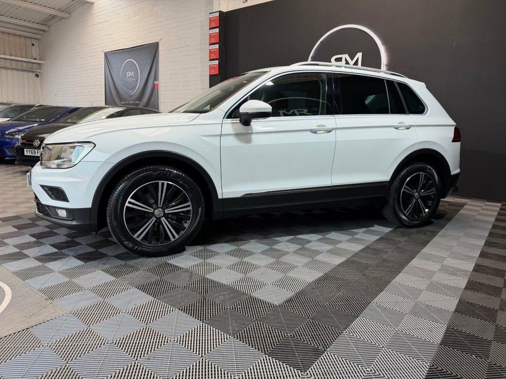 R & M Autotecnica are proud to present this opportunity to purchase a stunning 2018 VW Tiguan 2.0 TDI SE Nav DSG. The car has been maintained to a very high standard. The car has the desirable 2.0 4-cylinder turbo charged diesel engine with an automatic gearbox. This is a genuine warranted mileage of only 73000 miles backed up with a comprehensive service history portfolio. Key Features & Specifications: Pure White Paint • 2.0 TDI engine with an automatic gearbox • 18'' Alloy Wheels • Bluetooth Phone Preparation • Voice Control • USB • Apple Car Play • On-Board Trip Computer System • Front & Rear parking Sensors • Electric Front & Rear Windows • Electrically Folding Heated Door Mirrors • Lane Assist •Adjustable Cruise Control • Remote Central Locking • Electronic Traction Control • Sun Protection Glass • ISOFIX Child Seat Mounting • Daytime Running Lights. Recent routine in house maintenance includes 2 x new tyres, new front disc and pads, cambelt and water pump replacement, DSG gearbox service and a full service and a full vehicle health check. The car comes with the full V5 registration document, HPi Clear Certificate, has all the original manufacturers handbooks and the locking wheel nut tool. Viewing is highly recommended and ANY inspection is welcome. At R & M Autotecnica we pride ourselves by preparing and testing all cars to the highest standards and woul Rhombus Cloth - Storm Grey, Pure White, 12V Socket - Luggage Compartment, 12V Socket in Centre Console in Storage , 12V Socket on Rear of Front Centre Armre, 18 Degree Angle of Approach, 18in Alloy Wheels - Patagonia, ABS - Anti-Lock Braking System, Active Bonnet, Adaptive Cruise Control, Airbags, Alarm with Interior Protection with Deac, Automatic Coming-Leaving Home Lighting F, Automatic Dimming Rear View Mirror, Automatic Hazard Lights Activation Under, Black Grained Lower Door Protectors with, Body Coloured Bumpers and Door Handles, Body-Coloured Door Mirrors with Integrat, Car-Net App Connect, Car-Net Guide and Inform (3 Year Subscri, Carpet Mats - Front and Rear, Chrome Side Window Sur